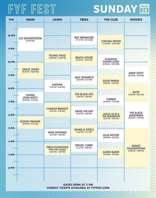FYF FEST SET TIMES, SUNDAY, AUGUST 28