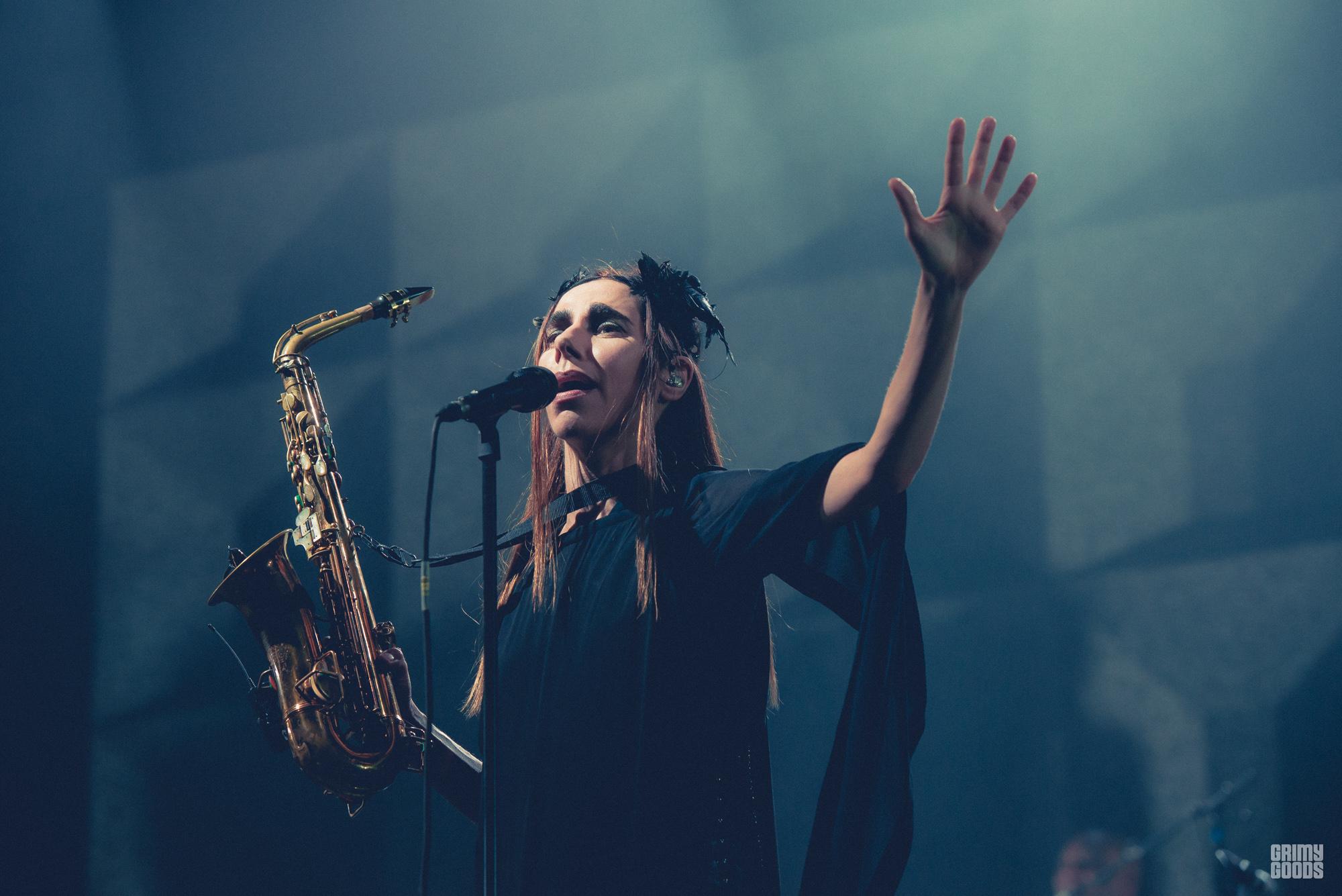 That’s not to say this show, or PJ’s last two albums, are downers. One of PJ’s many gifts is the ability to set weighty lyrics to music that not only diffuses the blow but acts as a digestif. It’s a monumental task to get people to be aware about the world that exists outside their own arms reach, let alone to dance to music about its condition. But the delicate balance of delivering a somber message in a passionate way that doesn’t feel preachy is exactly what PJ has showed on her last two albums, and again was a theme this night at the Shrine Expo Hall.