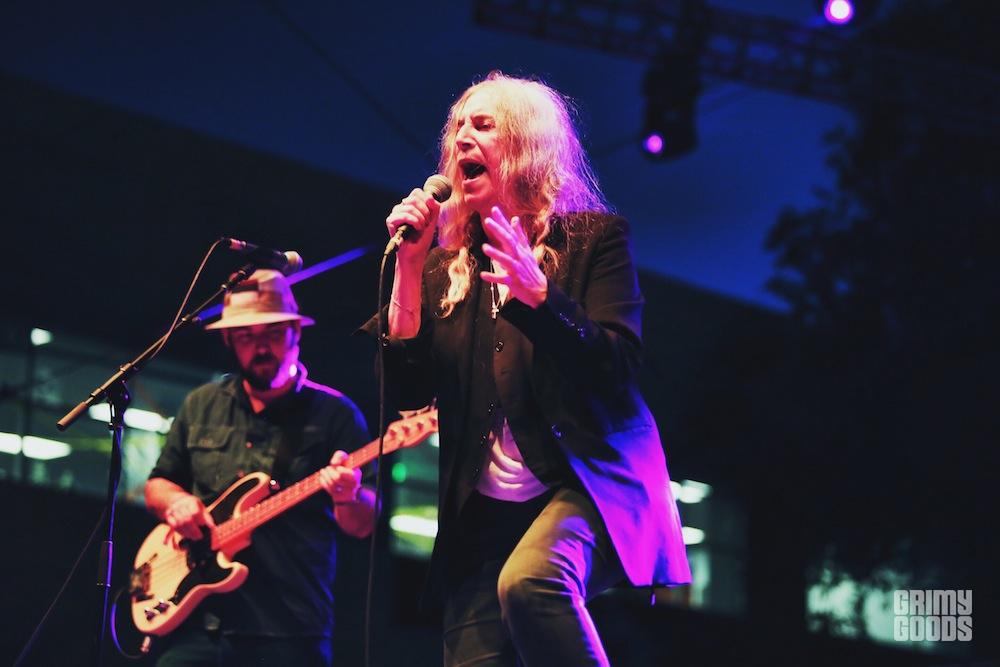 Later, the “punk poet laureate” Patti Smith took the RX stage to remind every other act at the festival where their sound comes from. Drenched in eerie blue and yellow lights, the veteran singer-songwriter emerged to insane roars from the crowd as she announced it was time to “get this shit rolling.” At 69 years old, Smith still moves with the same vitality as she did decades ago, giving the crowd a pulsating nerve of energy as she danced and thrusted her hand out into the crowd for every punk anthem. In her relatively short set, Smith traversed across the highlights of her storied career, opening with the upbeat rollings of “Redondo Beach” and “Ain’t It Strange,” reaching for the outstretched arms of fans and chastising even some for holding up their cell phones. Smith spun and shook with an inherent agelessness in her soul, ending her deeply poignant presence with a throat-burning cover of The Who’s “My Generation.”