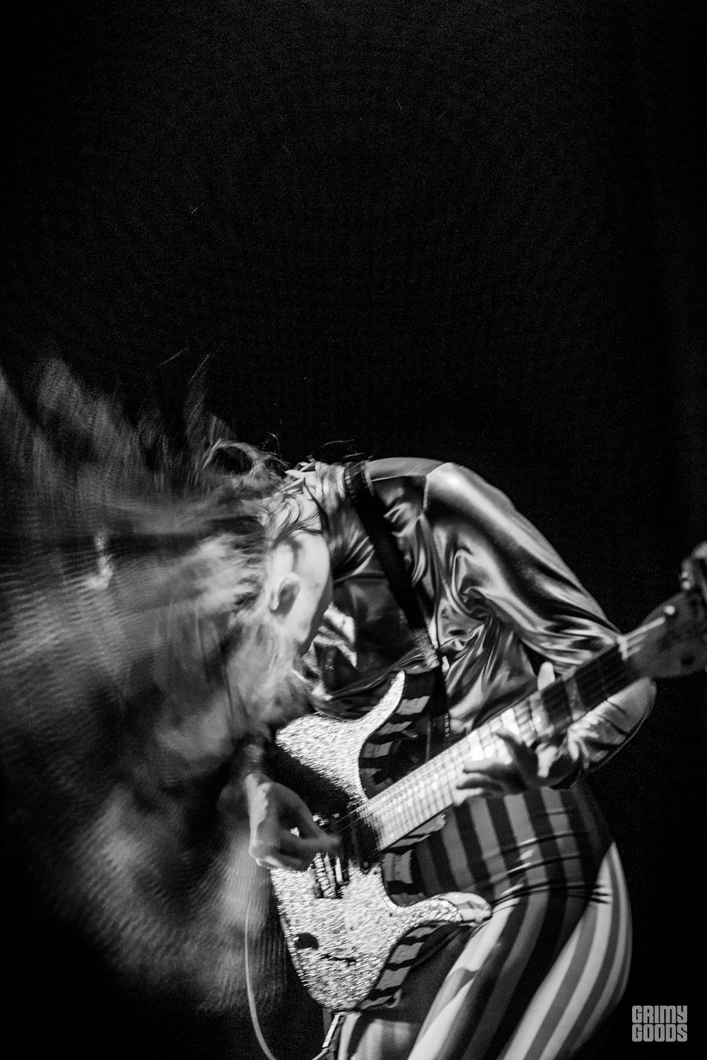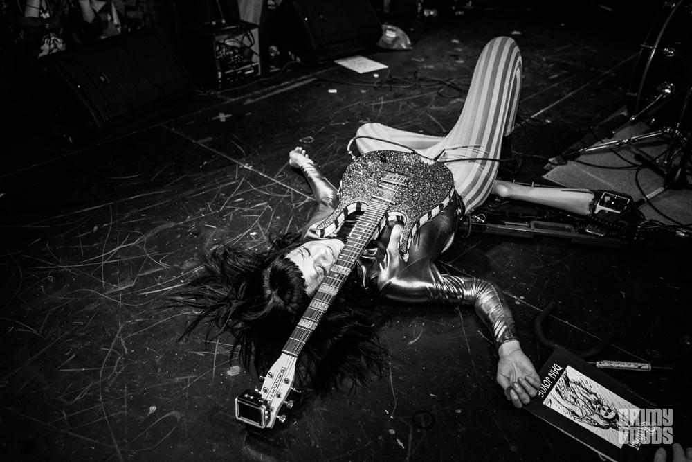 As soon as the lights went out the animal roared. House’s stage persona was on the prowl. She was non-stop: banging her head, crawling on the ground, getting acquainted with the fans by jumping off stage and rocking-the-hell-out. At the end of the night she climbed on top of a table and did her second to last song from there. Kim House embodies the meaning of rock ‘n’ roll. There isn’t one show where this rocker does not give her all, sometimes with flesh and blood. That’s how chaotic and physically demanding her performances are.