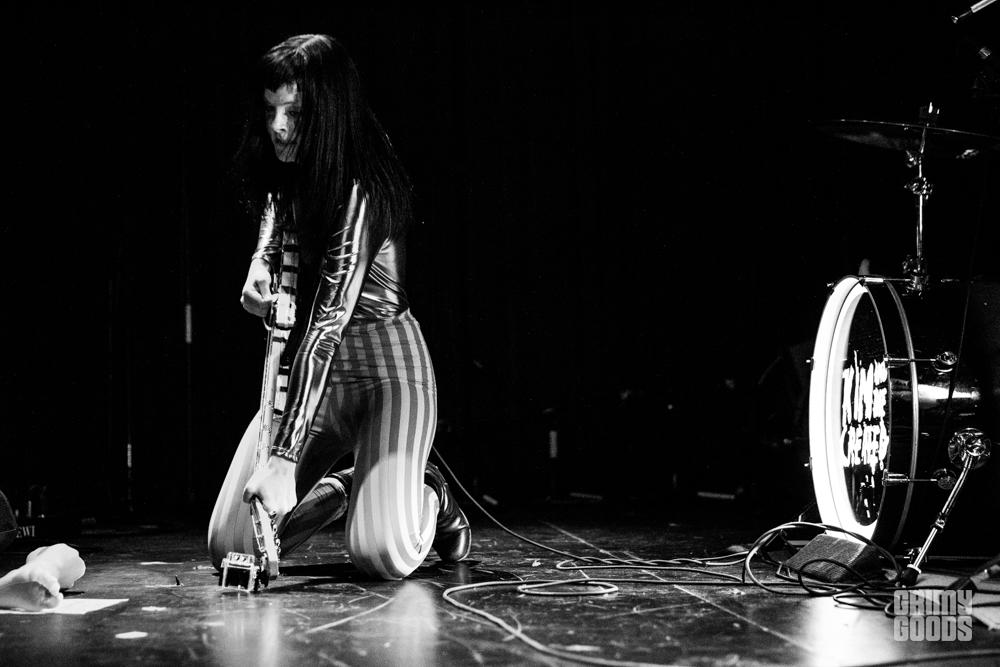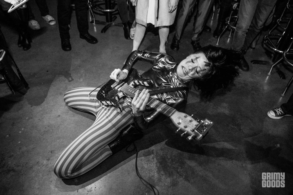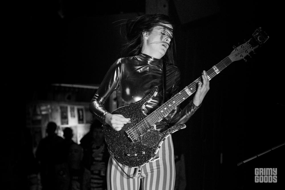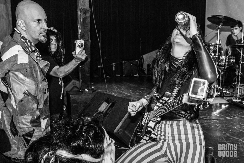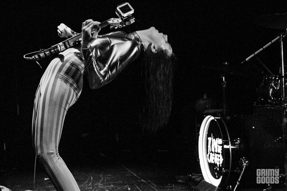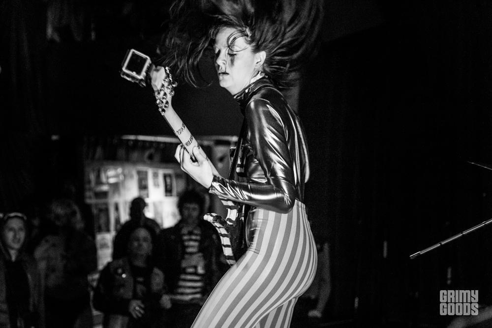 Before the show, Kim and The Created were on stage awaiting their time to perform. They were supposed to go on around 9 p.m. but since the interview ran a little late they had to wait for their new cue. House seemed slightly shy and a bit nervous as she was standing on stage as people were coming into the room. This was not my first time seeing Kim and the Created, but this was the first time seeing her in a non-performance scenario. I was a little stunned to see her slightly nervous or maybe anxious is the right word… I actually overheard her saying that she felt like a “caged animal” as she waited, which is quite surprising considering on stage she’s like a feral creature, exuding the utmost confidence and swagger.