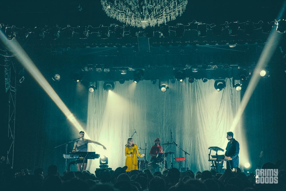 Four piece synth-pop group, Austra delivered a vibrant performance last week at the El Rey Theatre, Los Angeles. Led by the enchanting vocalist, Katie Stelmanis, the fierce frontwoman showcased her political art through her new album Future Politics and transported us to what felt like an underground nightclub. Stelmanis’ vocals were powerful, dynamic and were the perfect compliment to the captivating sounds produced by her band. Austra showcased compelling new tracks from Future Politics. Unfortunately, there wasn’t a ton of energy from the crowd. It was more of a chill and swaying back-and-forth type of audience. Older tracks like “Home” and “Lose it” were the crowd favorites that turned up the energy in the low-spirited room.