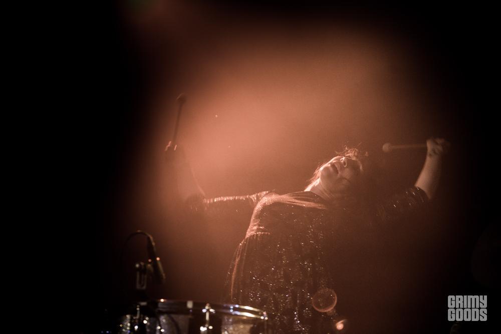 Kolars played in between the two bands. The husband / wife duo featuring Rob Kolar on the guitar and Lauren Brown on the drums are formerly of the glam-folk band He’s My Brother, She’s My Sister. They are without a doubt a rock ‘n’ roll band and it sounds a bit like you were taken back to the 50s, however there is a little twist; Brown brings some dope originality to the drums. She set up two floor toms, a snare, a single symbol, and she stood on a bass drum and wore tap shoes. Yes, she taps while drumming. She is creating beats from every limb! Her whole body moves but her head for the most part stays in one spot with an intense focus. It was really awesome to see. Kolar is fantastic on the guitar; his vocals and looks really bring that rock ‘n’ roll feel home.