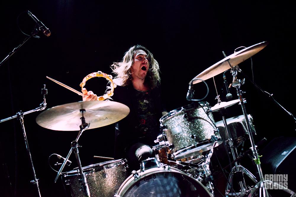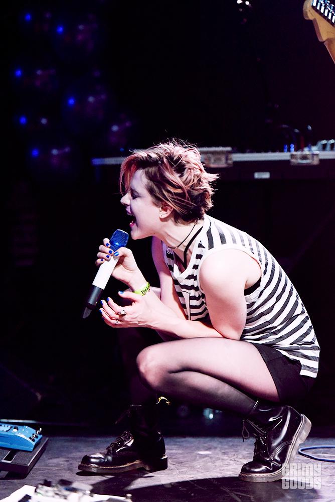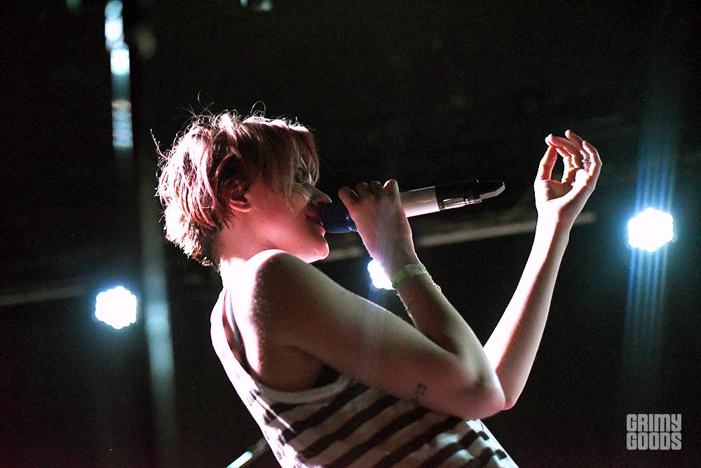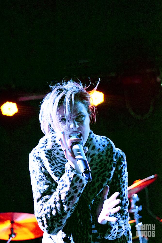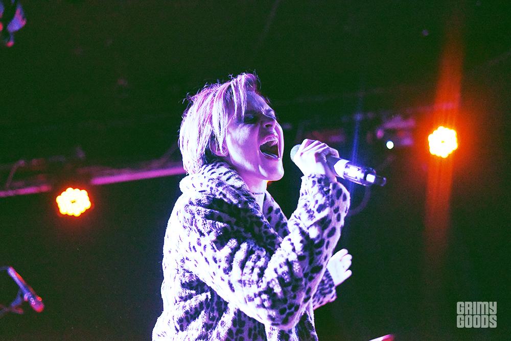 Wood is a natural onstage, breathing in the crowd’s rabid enthusiasm and roaring it back to them, whether its in a deadpan, monotone delivery over twinkling synths (“Escondido”) or twirling her sharp vocals around Villa’s glittery guitar lines. Rebel and a Basketcase effectively bridge the gap between head-rushing rock and danceable body-ragers, infusing a self-aware sense of melancholy and hope–a feat that Wood has little trouble accomplishing. Strutting and spinning onstage, she dazzles in the ways most 80’s artists might’ve, hypnotizing not with hyperbolic passion, but an almost restrained inner-conflict. It’s easy to see that both Wood and Villa wear the inspirations of their songs not just on their sleeves, but have them painted all over their bodies and then they dump them on the crowd as if to say, “We know you’re feeling these things too, so just let it out.”