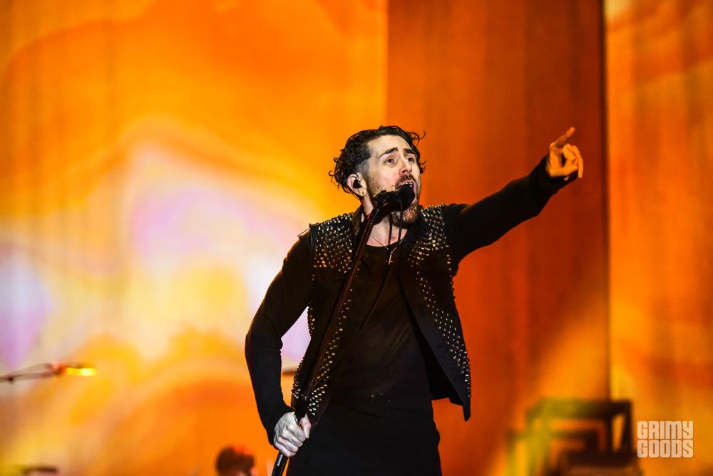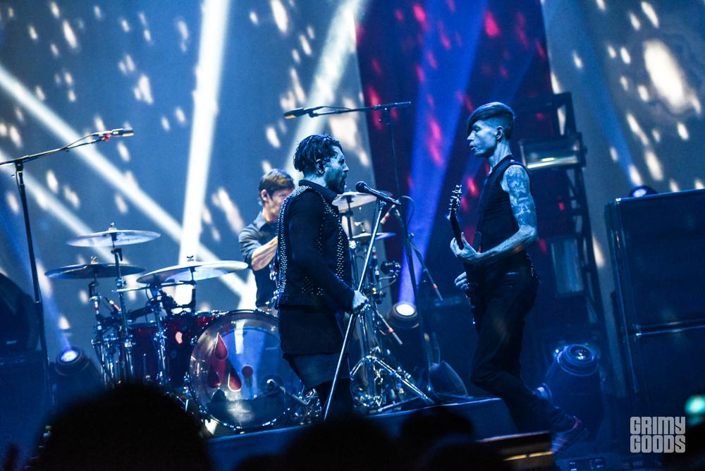 This band has stayed true to their rock/hardcore roots and carried through the years with such an intensity behind their music that really resonates with each fan, especially live. With lights dimmed, smoke filling the stage and a blood shade of red backlit, fans started stirring. Common to any AFI show, fans began chanting in unison “Through our bleeding, we are one” — a line from the track “Strength Through Wounding” off their 1999 record Black Sails in the Sunset. You could just see the emotions in each person’s eyes as they stared waiting for the show to begin. First on stage was drummer, Adam Carson, kicking off with some steady drum lines. Next we had Hunter Burgan on bass and Jade Puget on guitar make their way and begin warming up their sounds. One loud drum line later and lead vocalist, Davey Havok walked his way to center stage.