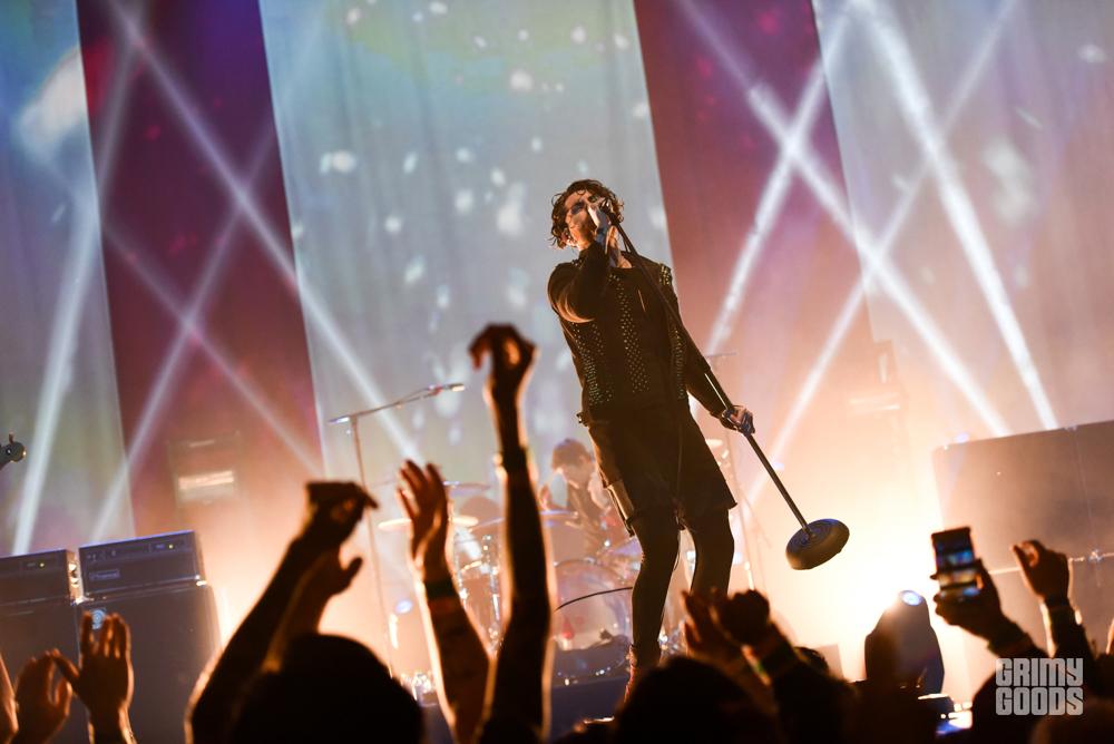 One truly rad thing that’s stayed consistent throughout this tour is the inconsistent setlist! Unlike most touring acts, AFI switched up the setlist dramatically with favorites from their ten-record discography at each show. While the rest of the band executed a polished performance that greatly reflected their 20+ years as a band, frontman Davey’s god-like presence made way to the worshippers at his feet. It is truly remarkable the participation and force he almost demands from his crowd. Maybe four or five songs in, he figured he’d forget the stage and hop right down into the front barricade, making his way to the center of the Wiltern to be right in the crowd. It was unbelievable! Fans roared while he sang/exclaimed directly into their faces, and finally settling on top of the crowd themselves right in center house.