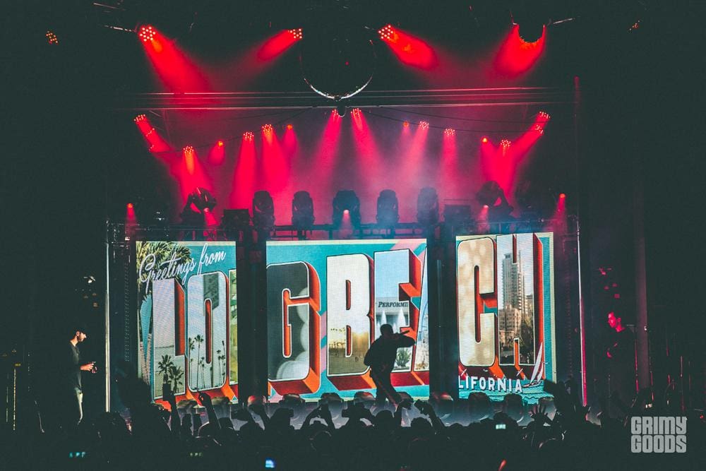 The Long Beach rapper ended his set with his most recognizable tracks “Blue Suede” and “Norf Norf” with a Long Beach Postcard on his large backdrop (see below).