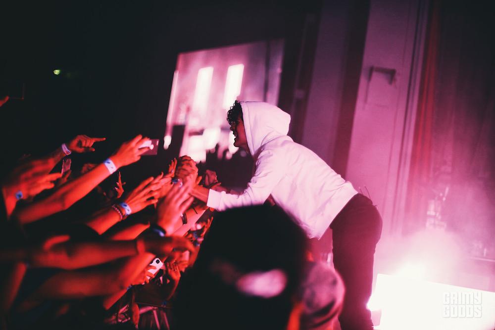 Matthew Healy and company hail from across the pond, so when they do descend upon the states their fans treat their arrival with the same composure and poise as a man whose been stranded in the desert might react to stumbling upon an ocean. From the moment the house lights of the Greek Theatre began to dim and smoke started to fill the stage, all the way to Healy’s final hip-shake, The 1975 played to the wild howls and screams of their delirious fans. Their reaction was not unwaranted either; illuminated by the over ten-foot tall panels of light that reduced the band into shadowy sillhouettes, Healy bathed in the glamour bestowed upon him by the hundreds of admirers at his feet and returned that zeal ten-fold back to them. It would be easy for casual listeners who’ve heard The 1975 in passing on the radio or from an overtly enthusiastic friend to label them a small step-up from the trite pop acts of recent years–easy, if you’ve never seen them live.
