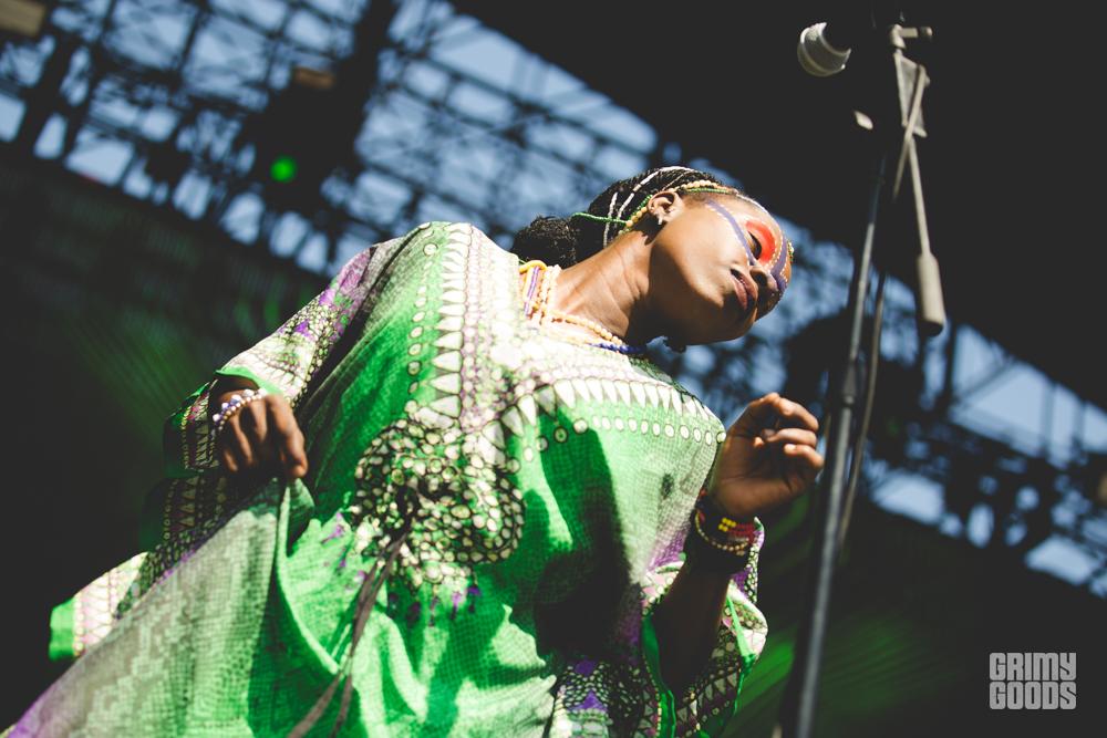 The early birds on Saturday at FYF FEST were in for a treat with Jonathan Richman and Seun Kuti & Egypt 80 opening the Club and Lawn Stage. Jonathan Richman set the good vibes under the shade at The Club stage with his theatric and comedic set. Meanwhile at the Lawn, thirteen musicians were crammed on stage warming up delivering waves of brass, bass, electric guitar and percussion before Seun Kuti took the stage. Once Kuti finally took the stage all eyes were on him as he played the hell out of his alto sax making it a top notch Afrobeat set.