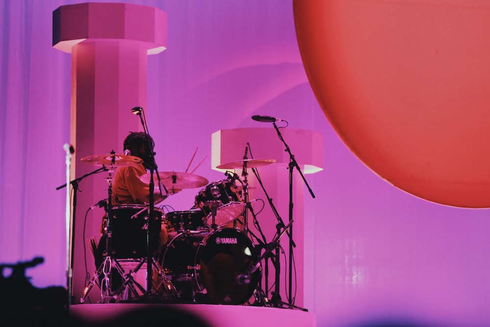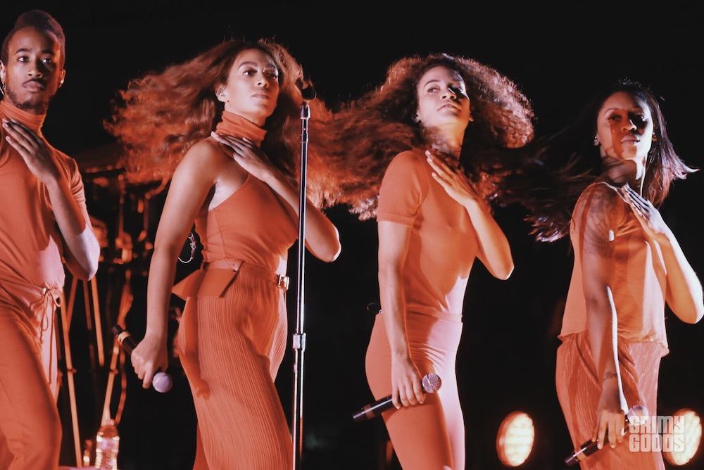 Nine Inch Nails officially closed out FYF and the band’s return was an epic display of theatrics and combustible rock soundscapes. With Trent Reznor roaring along to their coliseum-sized industrial rock anthems, even now it’s hard to shake the virulent riffs and visceral bass from where it burrowed itself in my chest. Explosion after explosion burst from the smoke covered stage it was every bit the performance once could’ve hoped for from Nine Inch Nails–but while Reznor and company might’ve burned the stage to the crowd, it was Solange who an hour or so previous had elevated to ethereal heights. Personally, I went into Solange’s set blind, with only a handful listens to her music and little reading done on her shows. Within five minutes I was completely blown away and screaming along with the die hard fan next to me who knew every word. It would be remiss of me to even mention a comparison to her sister, so the only thing I’ll say of Beyonce is this–a muse of otherworldly proportions runs in their blood and lives in that families soul. Solange is lead-singer, conductor, theatrical coordinator, dance instructor, queen of all her voice and the light from her very visible aura touches–and the moment her gaze catches you, you’re hooked. Illuminated by one of the most gorgeous sets of the entire weekend, bathed in red lights and surrounded by large geometric structures, Solange and her large ensemble of musicians and dancers dazzled through funky-pop dance tunes and heart-tearing ballads alike.