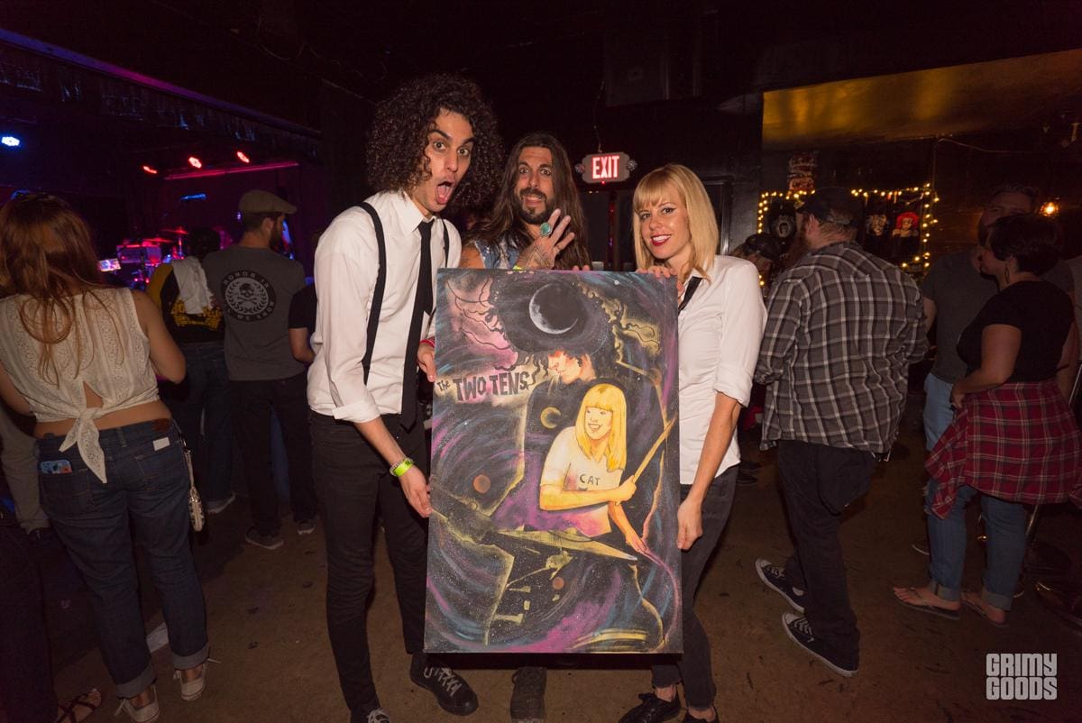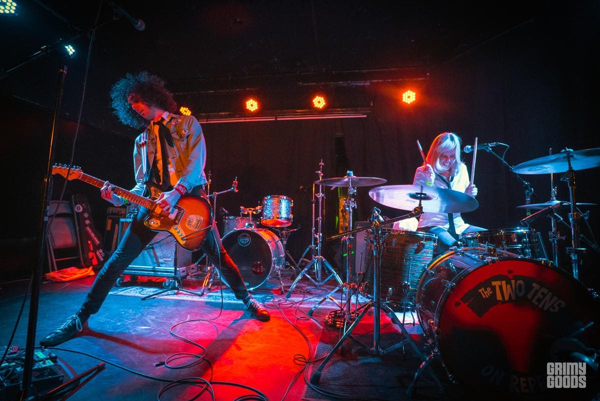 The Two Tens are as their name implies a two piece. Adam Bones on guitar and lead vocals and Rikki Styxx on drums. They lean punk rock-always fun, never taking things too seriously, a great relief from the struggles of today’s world although and few poppy love songs have snuck in this go round. They played their new release “On Repeat” in full on Wednesday night and on repeat is exactly what this album should be. I do believe limited edition (100 pressing) splatter vinyl is still available and if you pick it or the red version up you may notice a certain Grimy Goods photog’s work is included (full disclosure she is also writing this review).