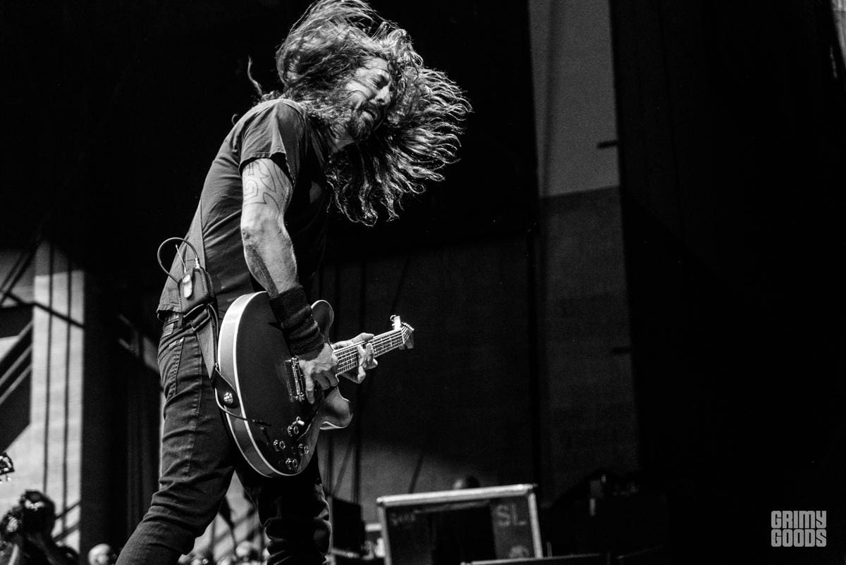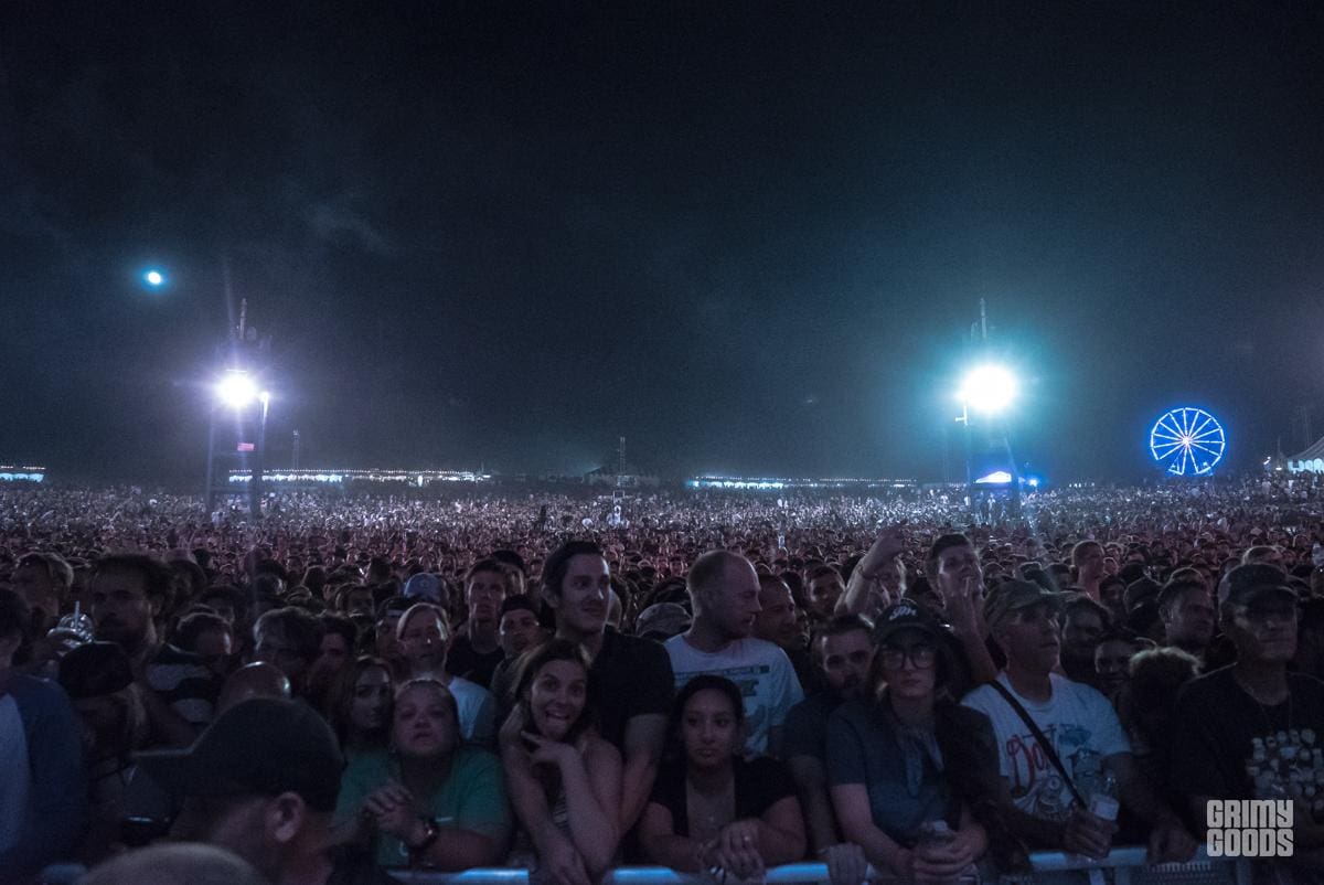 Over on the Sun stage American garage-punk band White Reaper tore it up and pieced it back together again with their virulent brand of unhinged rock sentiments. UK rock favorites Royal Blood kept the anthemic noise going on the main stage, where every band’s performance seemed to further build the anticipation and throne from which Foo Fighters would eventually take the stage that night. The duo from Brighton subdued the crowd with the affecting potency of their bluesy-psychedelic rock tastes, while Wolf Alice followed-up their set with the sublimely rapturous performance helmed by the furious Ellie Rowsell. A force of nature onstage, Wolf Alice was one of the first acts of the day to tap into that crowd-igniting energy that just bleeds a glorious rock purity. Matt Schultz of Cage the Elephant was another to truly dig past the skin and get into the gleefully primal emotions of rock’s kinetic powers, one owed to the singer’s singularly wild onstage antics. A Cage the Elephant show is not the same without Schultz ritualistic losing an article of clothing with every song–the man sings and performs like his actual life depends on it and the crowd never fails to absolutely lose their minds as he loses his. Schultz then punctuated the recent loss of Tom Petty, a cloud that hung over the festival and the rock community at large along with the recent Vegas shooting, with a purposefully impassioned cover of “Mary Jane’s Last Dance.”