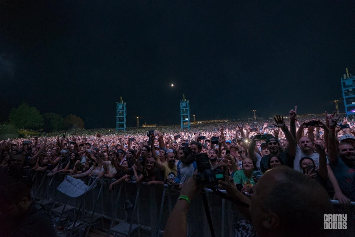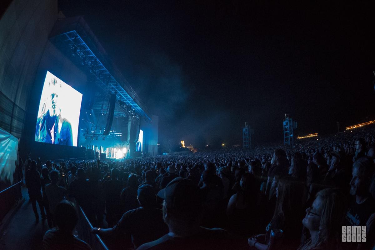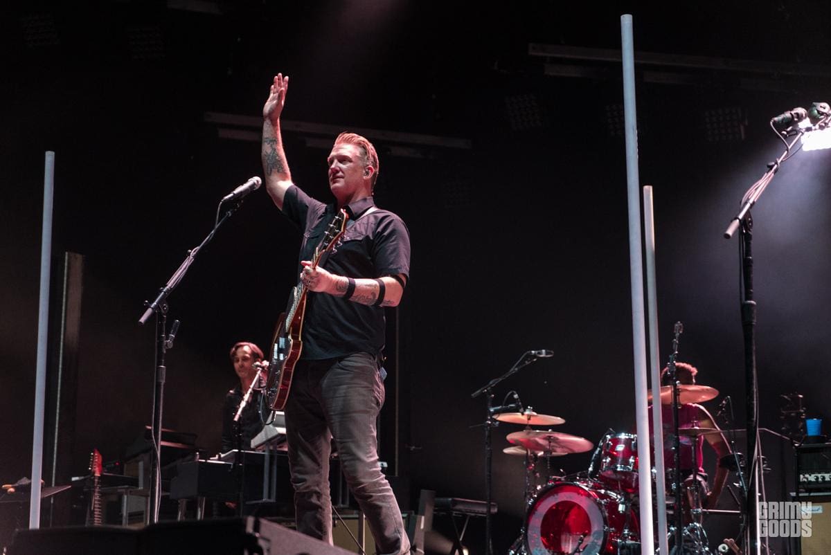 In an echoing of this sentiment, there was a moment during Queens of the Stone Age’s set in which Josh Homme lifted up a fan’s sign that said “Vegas Strong,” before flipping it over to reveal the handwritten names of all 58 of the victims’ names from last week’s shooting. It was a quiet moment of recognition, both of what the festival was trying to help fans escape from and also reminding in tender chastisement that we could truly never leave it behind. Queens of the Stone Age then proceeded to begin the demolition of the Glen Helen Amphitheatre, playing a variety of hits that both galvanized and enlivened the crowd like a live wire. Whatever weariness from the heat was completely eradicated–hell, pretty much everyone in the crowd would’ve come to just see QOTSA and Foo perform back to back, so the moment the former started it was like being born again.