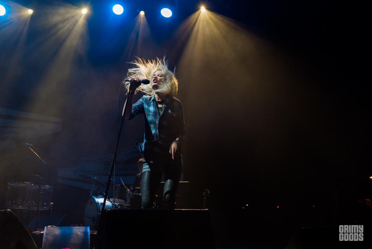Canadian rockers Japandroids mixture of classic rock and punk made immediate fans over on the Sun stage, barraging the crowd until they were won over by duo Brian King’s and David Prowse’s unrelenting vigor. The night continued to culminate towards what would be a sonically epic finale, with the last few hurrahs leading up to it including performances by Bob Mould and The Kills. Another great dichotomy at the fest was this seamless placement of rock vets alongside it’s newer manifestations, with both Mould and The Kills capturing two very different images of both. Alison Mosshart and Jamie Hince never fail to put on a killer show, preferring to wear the passions behind their saucy blues-rock burners on their sleeves, chest, and tongue, spitting them into the crowd along with a ton of sweat. Swirling with an aggressively sexual and viscerally honest fervor, the dynamics between the duo seeped into the crowd as Mosshart’s smoky vocals melted fans. As one of the more vocal forces of rock in the 2000s, The Kills have a legacy of bridging the generational gaps of rock–and Cal Jam was if anything besides a stunning spectacle, a testament to rock’s unifying nature.