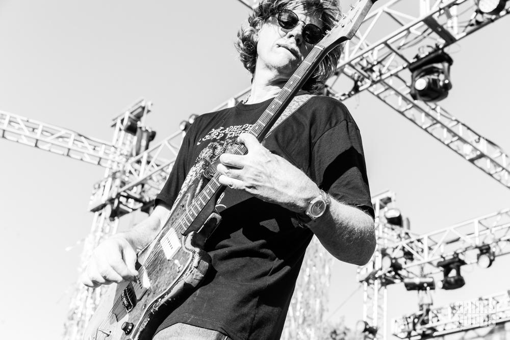 Photographer Wes Marsala and I arrived at The Institute of Mentalphysics in the middle of the afternoon with the music of two bands intermingling in the temperate desert breeze. With our sunblock applied and aforementioned bandana masks filtering the dust from the air destined for our lungs, we took a bit of time to familiarize ourselves again with the stage layouts, art installations, vending booths, and lavatories. With our memories restored and changes noted, we headed to the Moon Stage to catch one of the founders and former member of seminal art/noise rock band Sonic Youth, Thurston Moore.