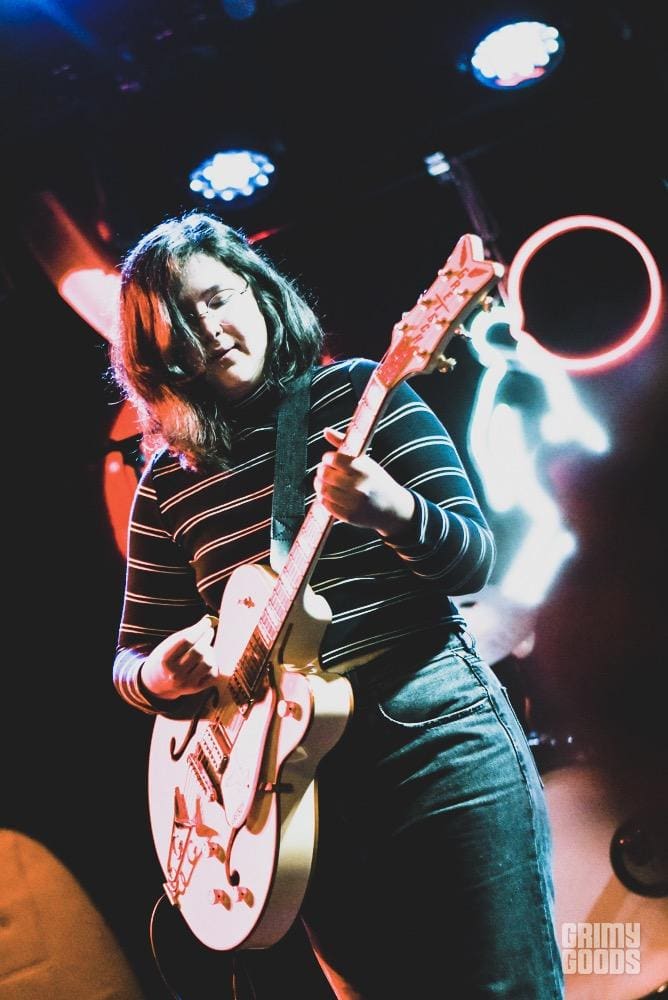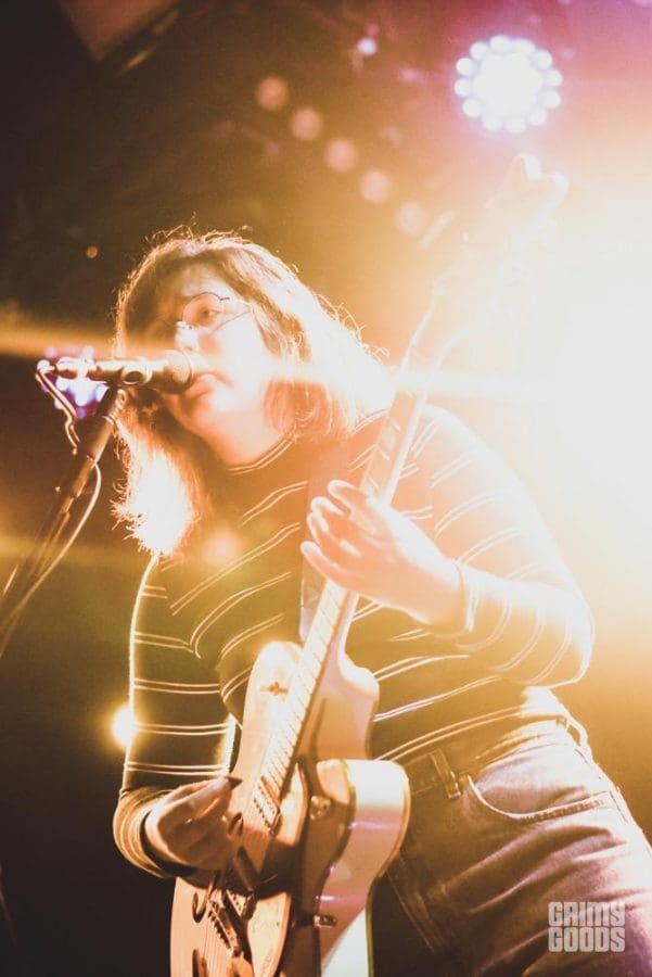 Next up on the bill were Massachusetts quartet, And The Kids. With two records under their belts, these girls were so happy to be supporting Lucy Dacus on this tour. Frontwoman, Hannah Morgan’s lush vocals carry throughout the music stylings of the entire band so beautifully. Morgan also was seen playing guitar with Adult Mom! It was a friendly affair. And The Kids channel some heavy indie rock mixed almost effortlessly with Hannah’s infectious voice. She’s so haunting! She wore this little baby doll style dress and moved around as if she were a wind-up toy that was let loose. The now full room couldn’t help but dance for the duration of their set.