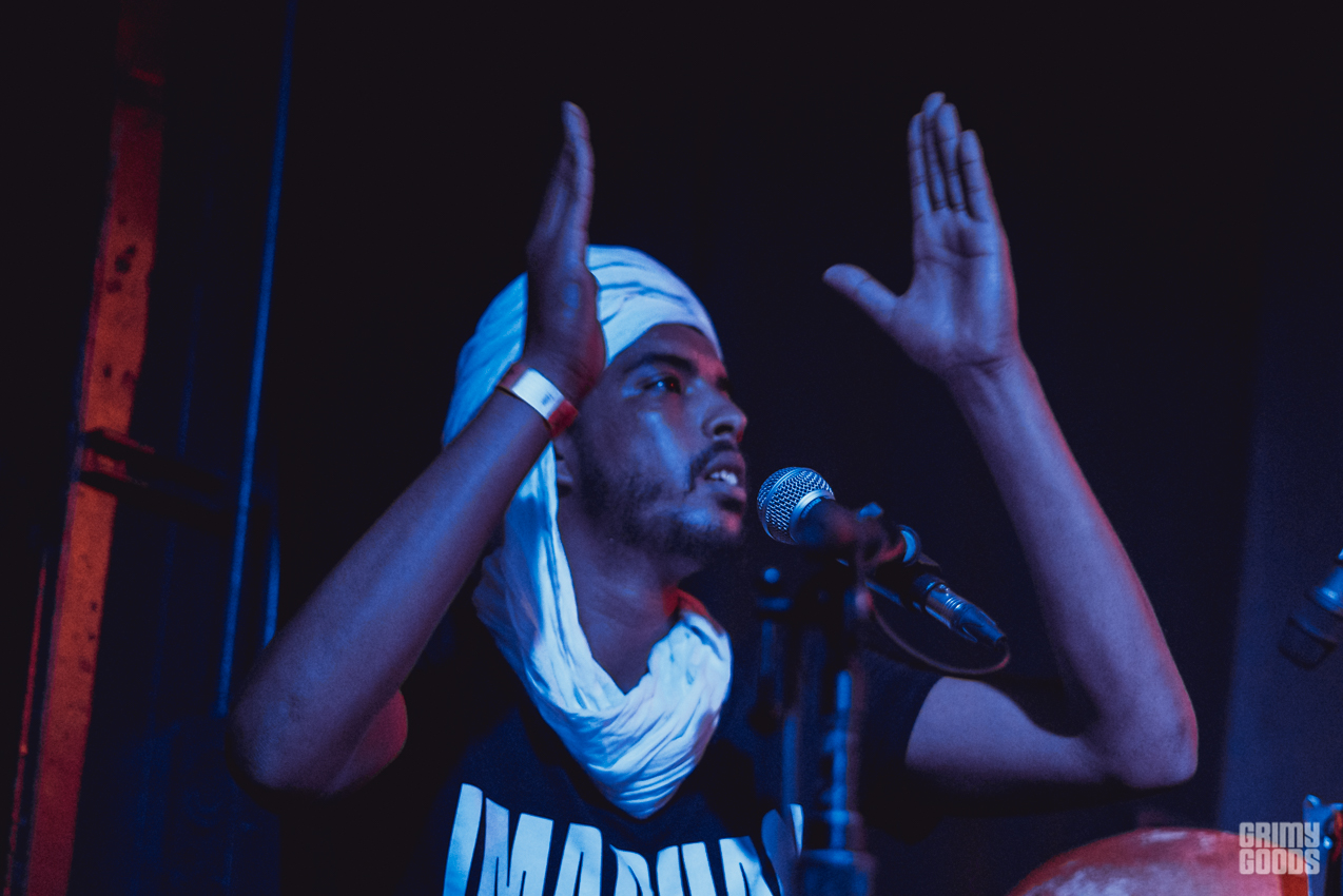 Imarhan’s music follows a line of tradition blended with the new wave of Tuareg music, born from the conflicted regions of the Sahara desert. Their messages are of union and community, and they sing together as such. Imarhan’s live performance was vibrant, their presence exotic, and the psychedelic riffs with pan-African sounds were a trip to another continent. Although the tones are subtle, this band’s music had those in attendance sweating and dancing elated. These friends have been playing together for about 10 years and are currently on tour. Highly recommend you experience their music.