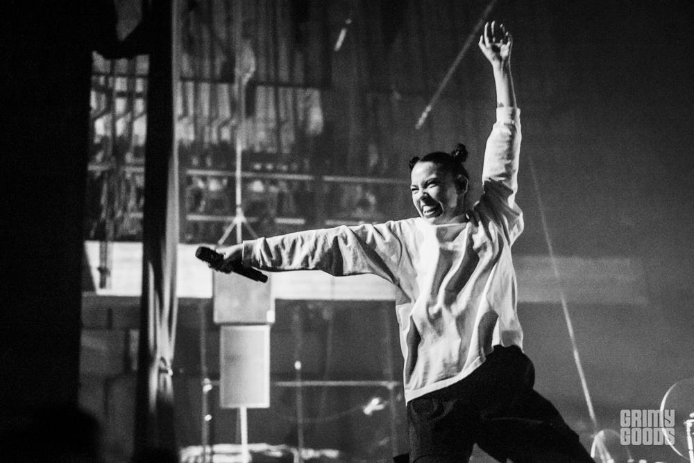 Without further ado, the lady of the hour showed her face. Alongside her talented drummer and guitarist, Bishop Briggs rocked the house. With little to no fatigue shown, Briggs made the Fonda her private hang out with a sold out show that lasted an hour and a half. Fans went crazy as the 25-year-old jumping bean performed. Briggs opened the show with her hit single “White Flag” off her newly released debut record, Church of Scars. WOW! Just wow! When the song was released only a few months ago, fans ate it up. What I believe enamors the listeners most about Briggs is her powerhouse vocals! She really brings you on a journey through her emotions. There’s no doubt about it that Briggs is also one of the coolest artists out there. Her style is casually simple: Adidas track suits and mismatched Vans skate shoes. What is truly the coolest about Bishop Brigss wildly likable personality, is that there is practically little to no difference between Briggs on stage and off stage as far as how she carries herself. She is soft spoken but then BAM! You could tell Briggs is so overwhelmed with the positive response she gets from her fans. Her music has been so well-received all over the world. I witnessed the front row practically shout the lyrics back at her throughout the set.