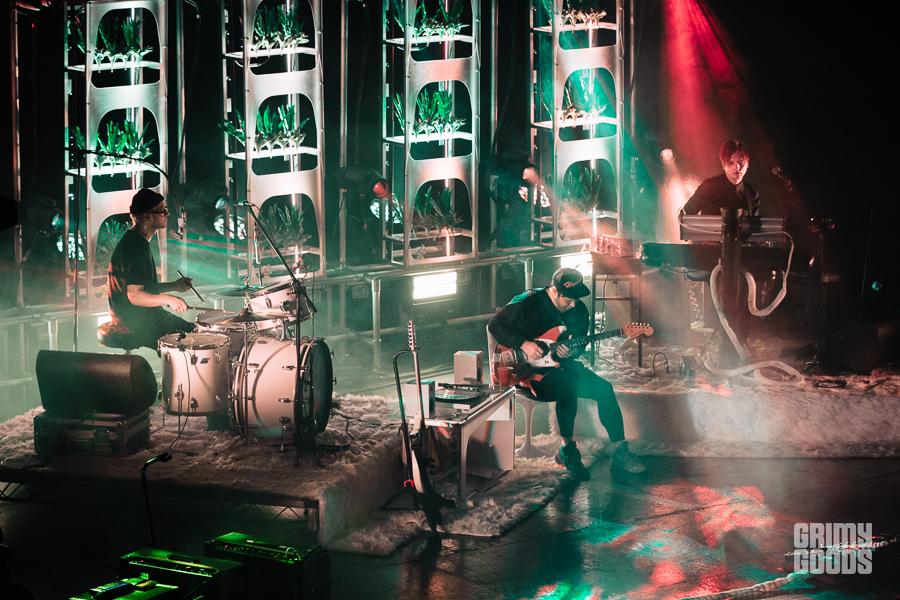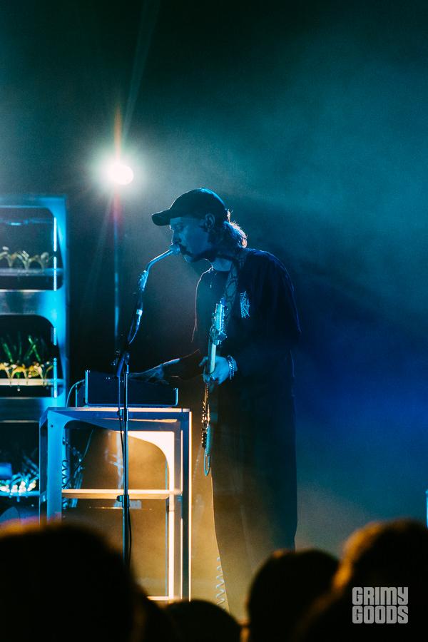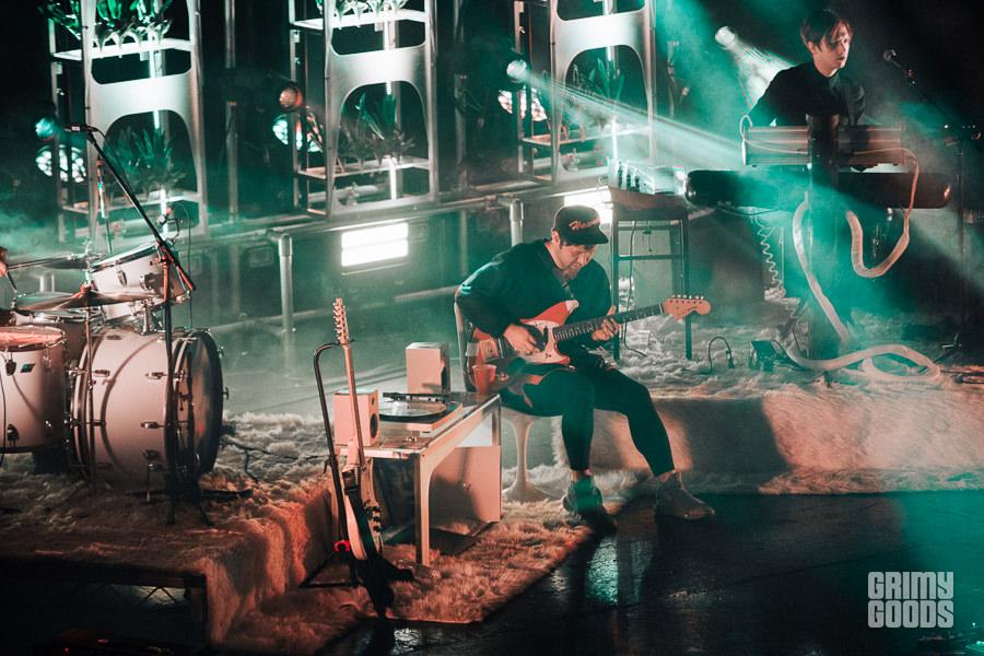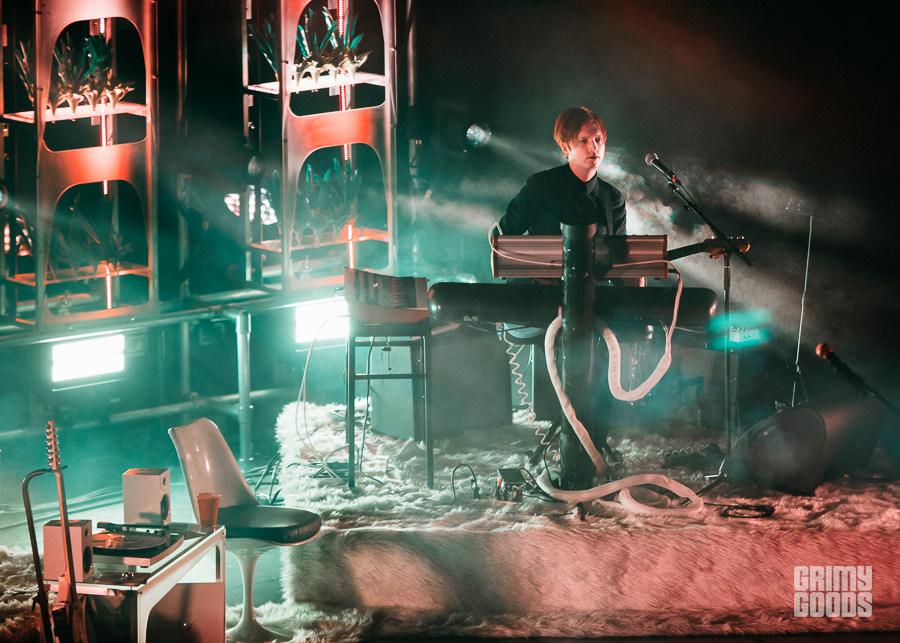 Touring their newest release, Sex & Food, psych-rockers Unknown Mortal Orchestra played The Wiltern in Los Angeles Friday night. From the faux plants to white shag carpet to a turntable and collection of accompanying vinyl, it was as if Ruban Nielson invited the entirety of the sold out crowd into his basement and said, “hey, let’s get a little weird.” Highlights of the weirdness that ensued included Nielson taking a jaunt through the venue and all the way up to the mezzanine for a quick jam session, a brief break between songs for members of the band and some of the techs to take a group tequila shot, and a stripped down but crescendoing version of “Not in Love We’re Just High” that managed to feel heartbreaking considering the subject matter. A departure both sonically and thematically from their applauded third album, Multi-Love, songs off the fourth release garnered less enthusiasm from the crowd than the former. Still, the set was full of a candid personality that made the entire night feel intimate, and well, weird. In a good way.
