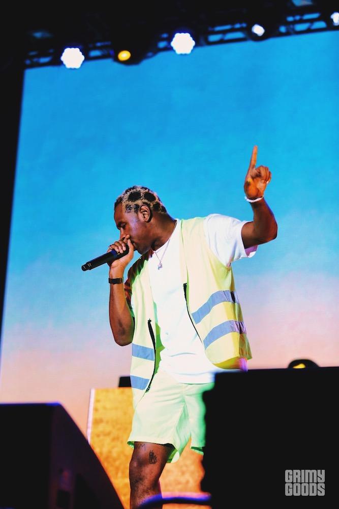 The performance was in stark contrast to Tyler the Creator’s, who stepped onto the same stage to unleash his own brand of off-kilter rhymes for his own rabid following. At first from atop a podium, swinging his long legs and flailing his arms in punctuation of every verse, Tyler had the crowd eating out of his hands within seconds. The moment he came down from his throne, illuminated by dark branches and stars that lit up the screens behind him, the crowd absolutely lost it. Never one to allow himself to be outdone, Tyler ran through his set as if he was competing with the crowd’s energy, hammering out every verse with such inflammatory gusto that it was a miracle he was still standing by the end of it.
