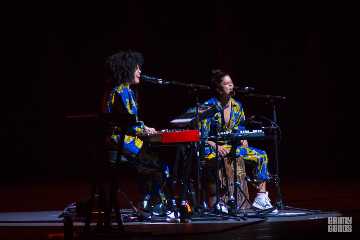 Opening for Byrne were French, by way of Cuba and Venezuela, were twin sisters Lisa-Kaindé Diaz and Naomi Diaz. The duo go by the name of Ibeyi, which translates to “twin” in the Nigerian language Yoruba. Ibeyi’s sound was joyous and jazzy, singing in English, French, Spanish and Yoruba. Ibeyi are choir-like in their harmonies and club-like in their beats.