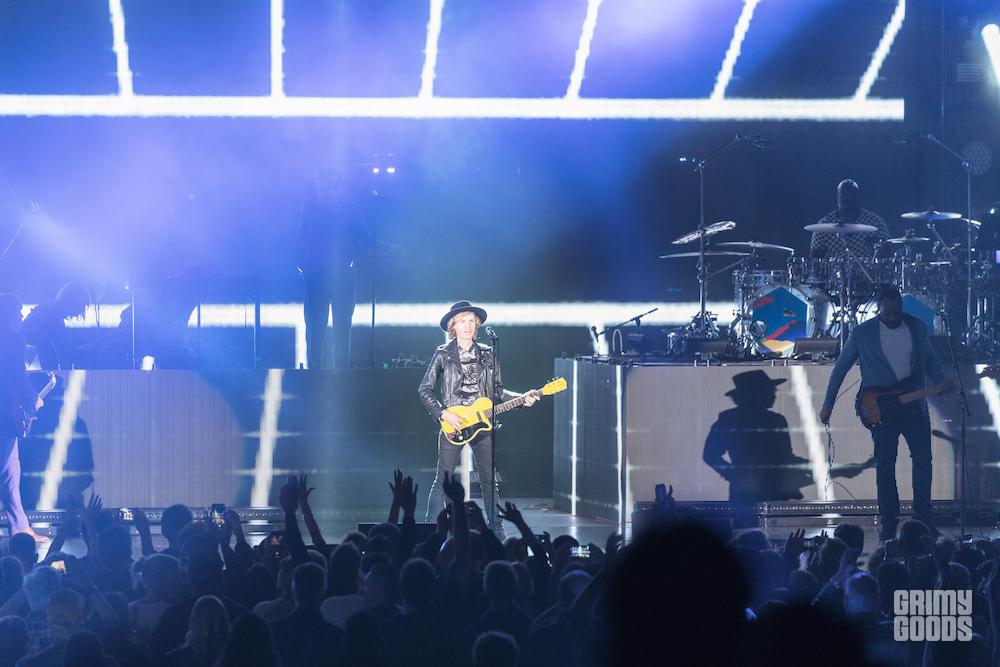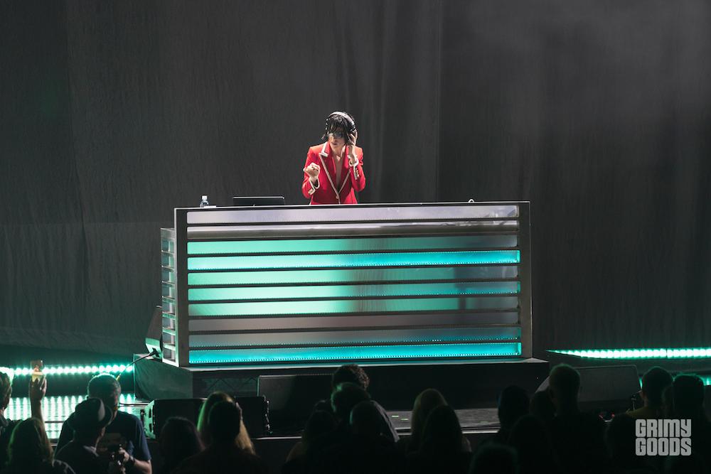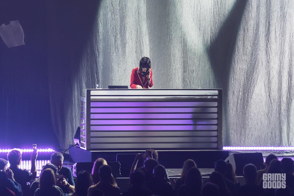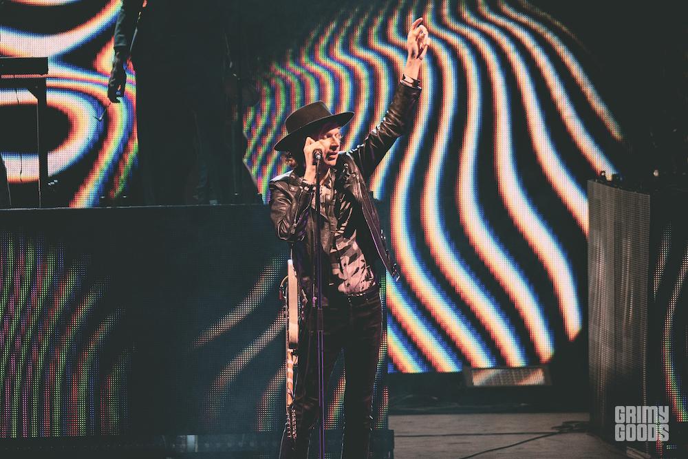 ST. VICIOUS, aka St. Vincent aka Annie Clark, performed a DJ set to intro the show, mixing together a blend of Nine Inch Nails and My Bloody Valentine and the Beastie Boys and more whilst wearing patches over her eyes that were like oversized eyeballs. It also happened to be Annie’s birthday, and Beck had the audience sing her Happy Birthday at the close of his set.