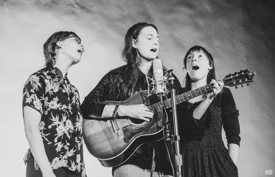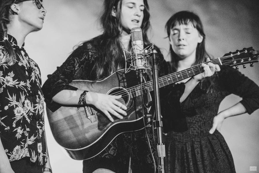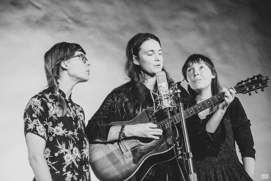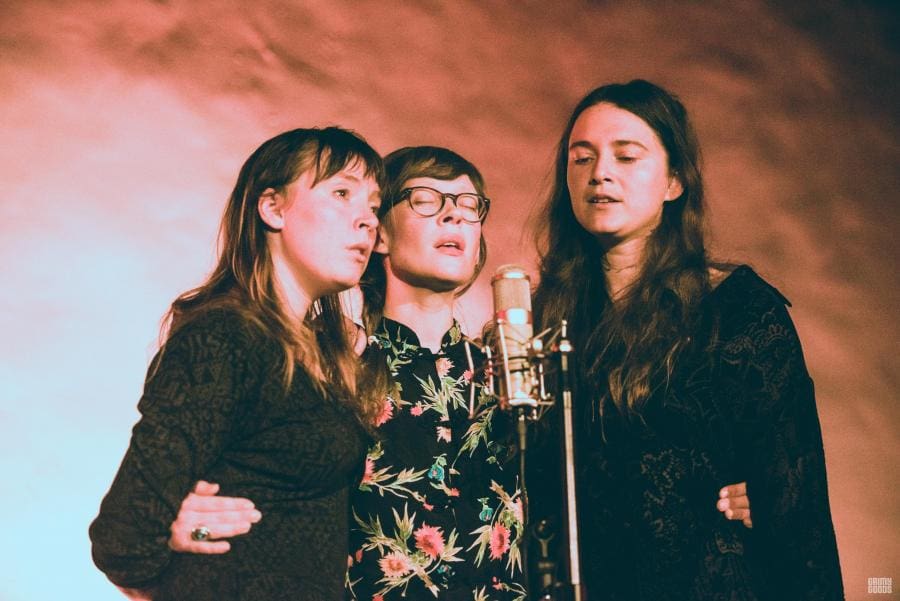 In light of the terrible fires happening around Los Angeles this week, folks found solace at the Masonic Lodge inside the Hollywood Forever Cemetery this past Friday night. The lovely trio, Mountain Man, sold out the venue for one of two nights. Comprised of Molly Erin Sarle, Alexandra Sauser-Monnig, and Sylvan Esso’s Amelia Meath, Mountain Man is just lovely musicianship. Having been eight long years since the ladies’ debut record, Made The Harbor, they are back with their surprise follow up, Magic Ship, which doesn’t even come close to disappointing. It’s not quite suiting to classify the trio as “quiet folk music” creators, because what they create is uniquely powerful. With a lone studio microphone center stage, the three surround it, arms around each other pulling tightly to create a tight knit unit and just softly sing. What comes out of their mouths is ever pure. The room was so silent, my camera shutter was the loudest pin drop. Immediately following the welcoming applause, the trio dove right into “Blue Mountain” off Magic Ship. Instantly the listeners were captivated by the lush, hushed harmonies. Sure we were in for a beautiful show, we stood so attentive to what was before us. Humbly continuing with “Rang Tang Ring Toon”, Mountain Man bounced their voices off each other with grace. There really isn’t a venue more fitting than the Masonic Lodge for their show. It was an all around beautiful experience. Meath also took the moment to thank everyone for coming to their “aggressively quiet” show. We were the thankful ones! I also believe I heard someone shout out “God is a woman!,” multiple times. Amen!