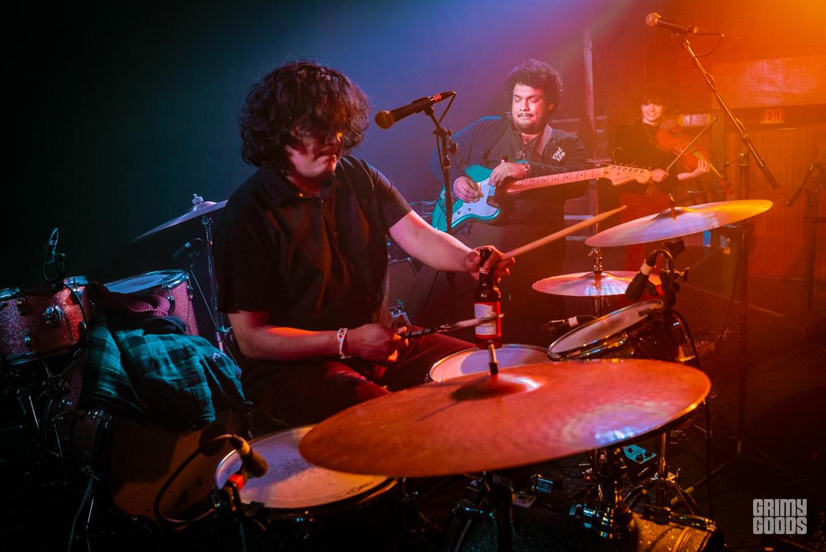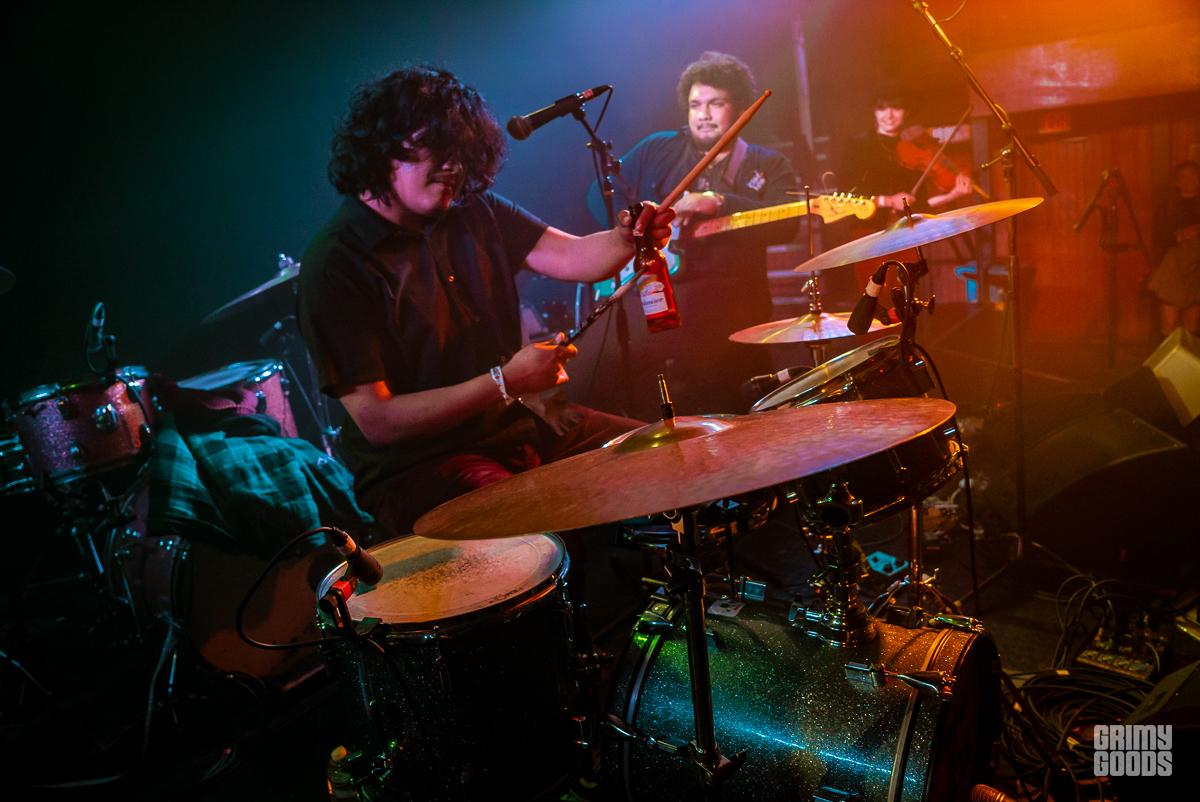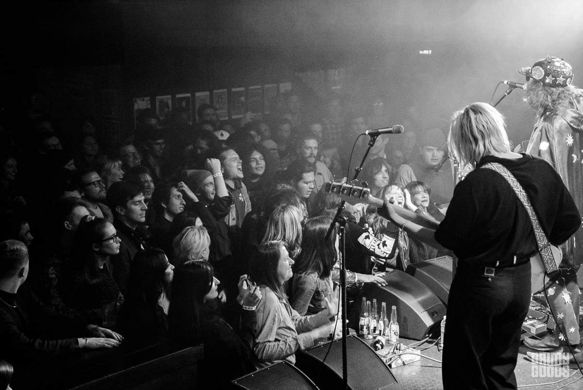 King Tuff (aka Kyle Thomas) has in the past talked about struggling with an on-stage persona that was much more party-boy then his off-stage. He has now re-embraced the fun aspects of his King Tuff personality. Opening the night with his “space flute” — a crazy-electronic-slide-whistle thing-a-ma-bob, King Tuff was bedazzled with a field of golden stars and music notes from head to toe including a sequined cape which he said made him feel free. For those cape curious, King Tuff highly recommends everyone tries wearing a cape. Joining the psych rock extravaganza was Coley Lawerence-a serious precise guitarist, Tuff said they were celebrating their one year friendaversary of meeting in the Troubadour bathrooms. Also joining King Tuff was wild child Zoë Brecher, who’s left-handed drumming talent seems to emanate from demonic possession. Also, on stage with Tuff was Adrien Young, a rad bass player who Tuff claimed he met in his dreams… or Echo Park… who can tell?
