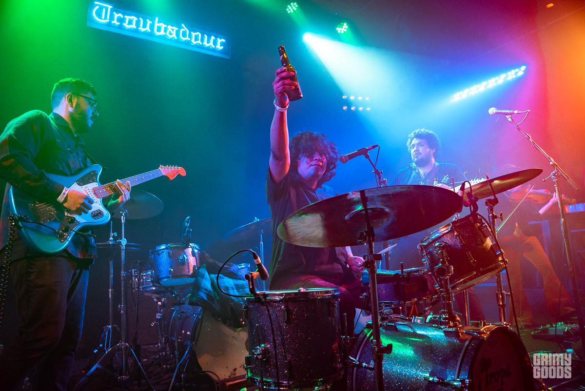 The Troubadour was slowly filling as King Tuff and opener, Tropa Magica (fka Thee Commons) lined up across the infamous West Hollywood stage. The six-piece band (Tropa Magica) complete with keyboards and violinist immediately warmed up the crowd with their care-free party vibes. Tropa Magica’s music is described as psychedelic cumbia-punk and they are one hundred percent a product of East L.A. Not only did they get everyone dancing via intoxicating rhythms, but they were clearly having a great time and the crowd generously kept the party going by continuously delivering armfuls of beer to the band. Drummer Rene Pacheco incorporated the donations seamlessly into his drum kit replacing the cowbell with a beer bottle after multiple deliveries. The cowbell eventually was taken off his kit and carried through out the venue by the keyboardist, nominated by the band for the task, with their bass player following behind to make sure the people in the back were also part of the party. Tropa Magica’s high energy set put everyone in the right space for cosmic rocker King Tuff.