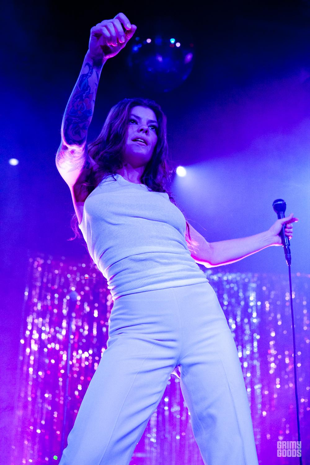 A loud, ominous droning bled from the heavy red curtain, parting to a foggy blue stage decorated with a silver rain curtain and a prom night disco ball. Donna Missal took center stage, bursting into an unreal performance of “Jupiter,” grooving like a total disco queen.