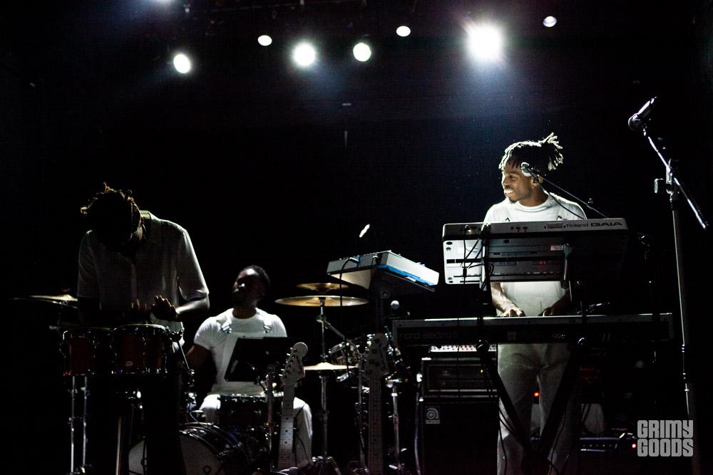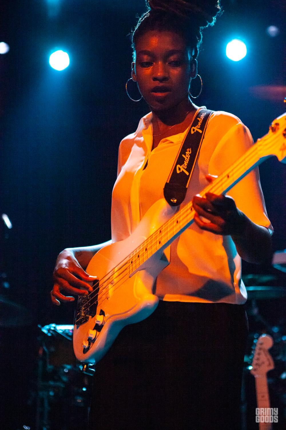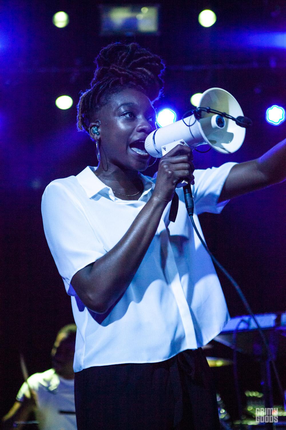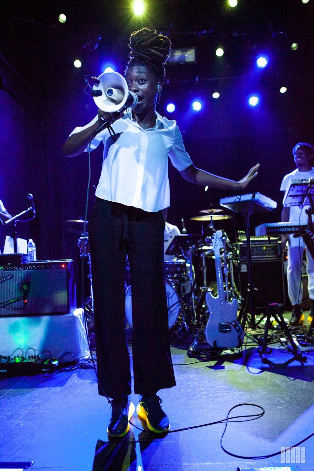 The band wore all white matching overalls and hypebeast-y running shoes with thick orange soles. The first song erupted a funky thunder of wubby bass while Little Simz paced around on the stage rapping through a loud speaker. The sound is totally it’s own thing, like Skepta with a Rootsy backing band and a little bit NWA “fuck it” anarchy.