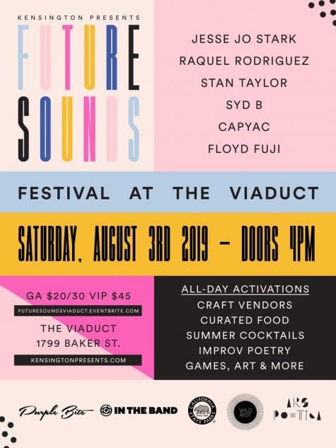 Presented by Kensington, Future Sounds will take place Saturday Aug. 3 at the The Viaduct, under the oldest bridge in L.A.! Performing acts include: pop rocket Jesse Jo Stark, sultry R&B vocalist Raquel Rodriguez, neo-soul phenom Stan Taylor, disco duo CAPYAC, electro-soul artist syd B and jazz-funk virtuoso Floyd Fuji.