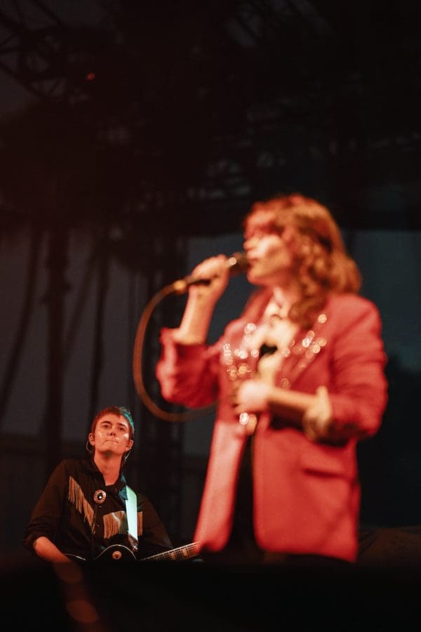From literally coming face-to-face with mortality in the western-spun tale “Dead Man’s Hand” — which led to the outlines of desert hillsides and green cacti onstage to light-up in neon colors around the band — to the mournful swing of “Wait by the River,” Lord Huron are no strangers to conjuring up death for a good story or song.