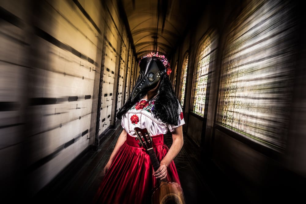Halloween is a holiday meant to frighten in the States, but in Mexico, Dia de los Muertos is a sorrowful yet optimistic occasion. Images of the Black Death dance with traditional Mexican symbols and garb in Nancy Sanchez’s latest single, which she began writing at 18 and finished when the pandemic gave it new meaning. The music video tells the story of “La Maldita Bruja” in two acts: first she begins with a classical guitar on the beach before she dons a pointed physician’s mask and approaches an altar. The onset of coronavirus gave us more to fear than ghost stories but Sanchez is hopeful. The ones we lost are always with us, helping us work toward a brighter future.