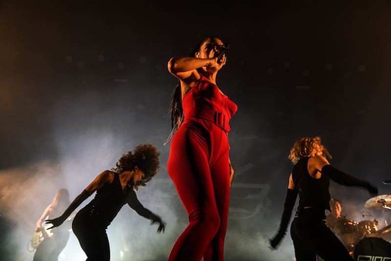 As soon as Rina Sawayama walked on stage in an all-red power suit and matching heels, the room was roared with pure excitement. Accompanied by two dancers and Sawayama all women band, the opening scene screamed glistened with female empowerment and endless opulence.