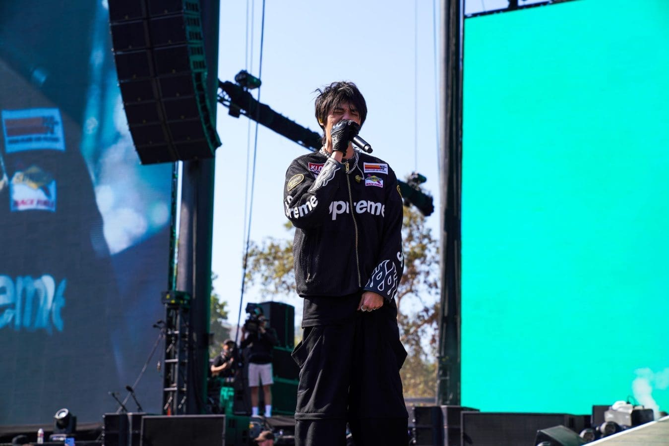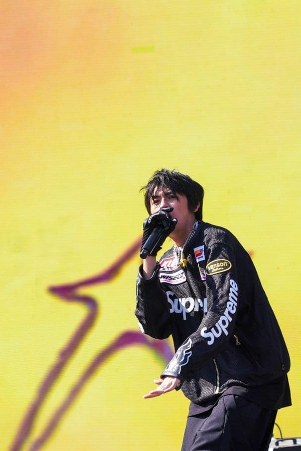 If there had to be an O.G. of 88 rising, I would say it has to be Rich Brian. Standing on top of a metal cube, in front of a screen of floating images of himself, Brian comes out like a title wave, rapping an unreleased track the internet is calling “Vivid.” He’s come along way from that young boy with the pink polo and tan shorts. Those social media users are now a huge sea of phones following his lead as he effortlessly goes from song to song. The crowd doesn’t miss a beat during his 45 minute set and their enthusiasm makes me make a mental note to revisit Rich Brian’s music. After hearing “Lagoon” and “Getcho Mans” at the festival he is definitely on my ones to watch list.