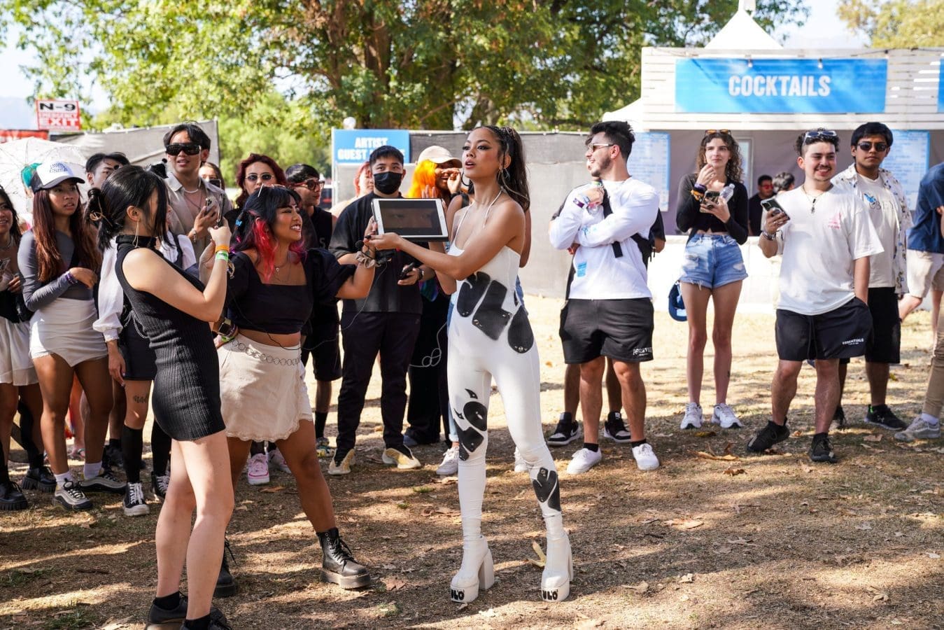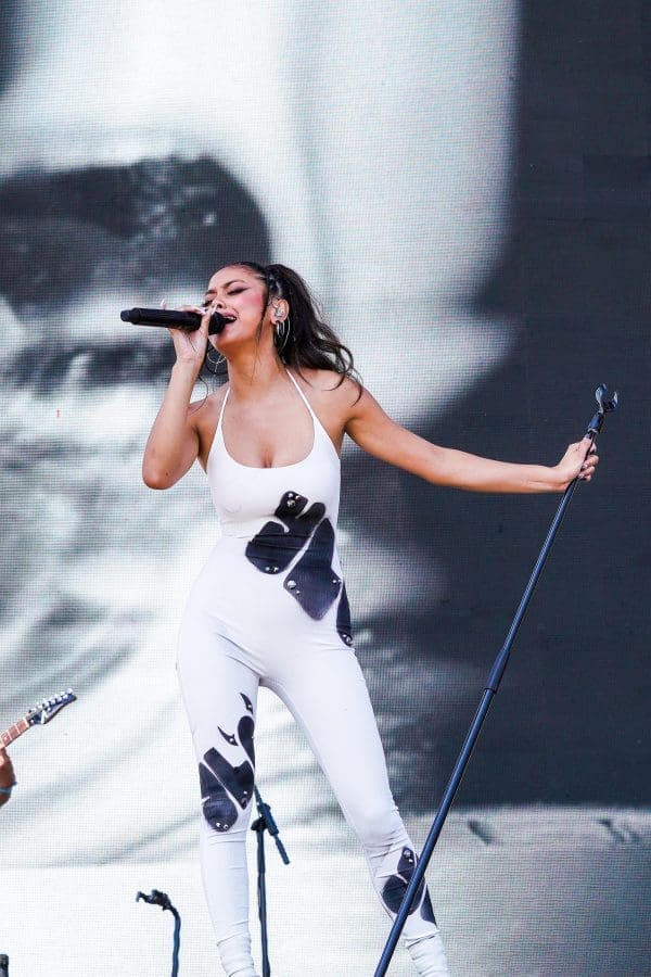 As DJ Co1 played a new mix of tracks, I be-lined it to see Ylona Garcia on the main stage and then rushed over to see No Rome over at the Double Happiness. Garcia, a Filipino-Australian songstress signed to 88rising opened the day with “Vibin.” Dressed in a white bodysuit and white platform heels, the singer strutted down the stage to perform her Ariana Grande- esque summer jam before doing covers of “Crazy” by Cee-lo Green and “I Did something bAD” by Taylor Swift. Garcia loves interacting with he fans and they love her for that reason. After her set, I caught her in the Vip lounge, playing iPad games with the supporters. We love to see that.