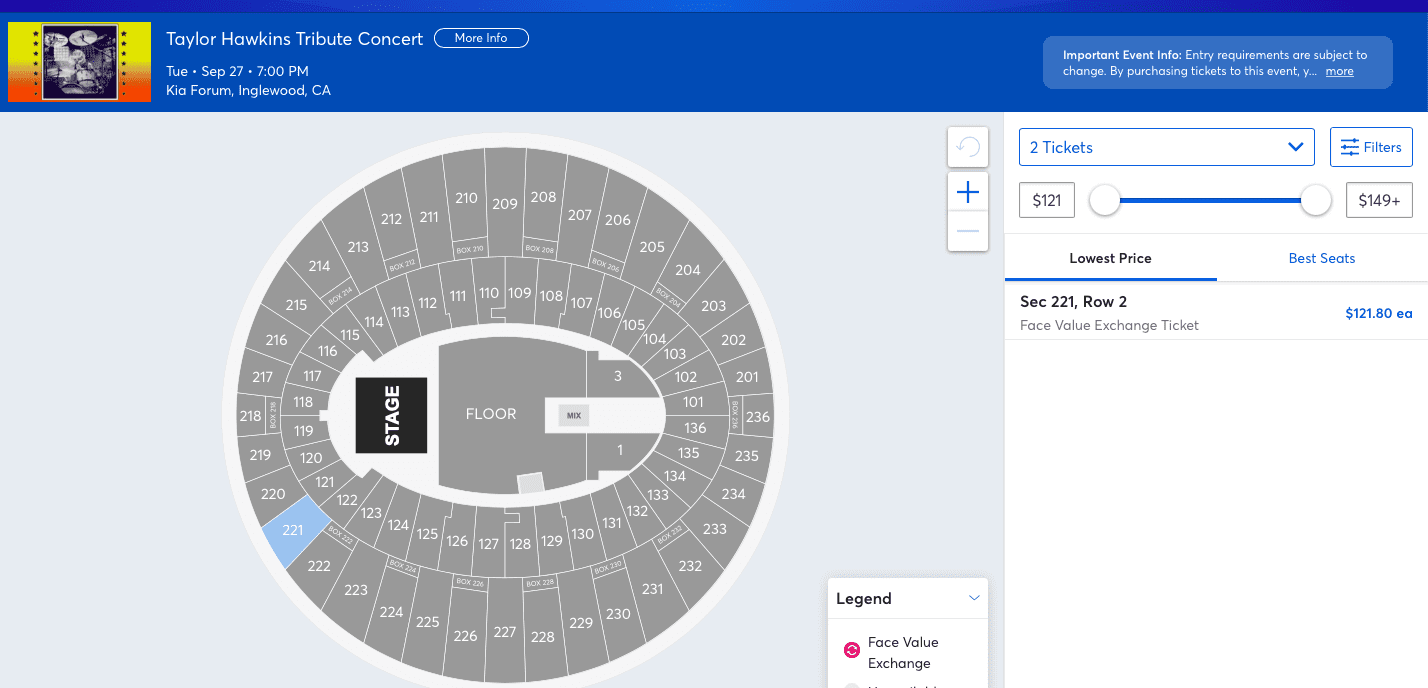 These types of concerts often do release more tickets (last-minute) so we highly recommend you save this ticket page and keep checking and refreshing to score some last minute tickets to the Taylor Hawkins Tribute Concert at the KIA Forum.