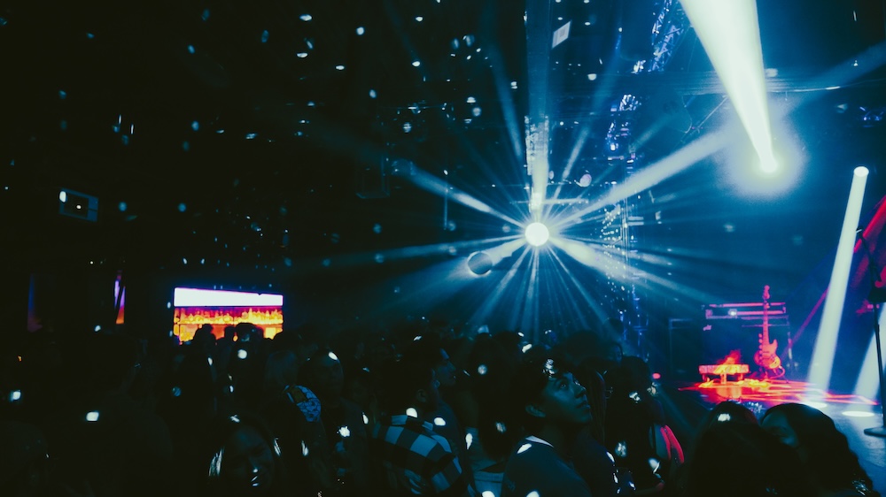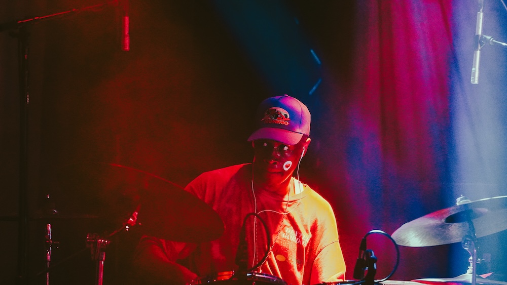 The soft pitter-patter of cymbals plays as the crowd waits for our headliner to appear. Love is in the air, drinks are flowing, and the blue light reflections of the Echoplex’s disco balls illuminate the dance floor.