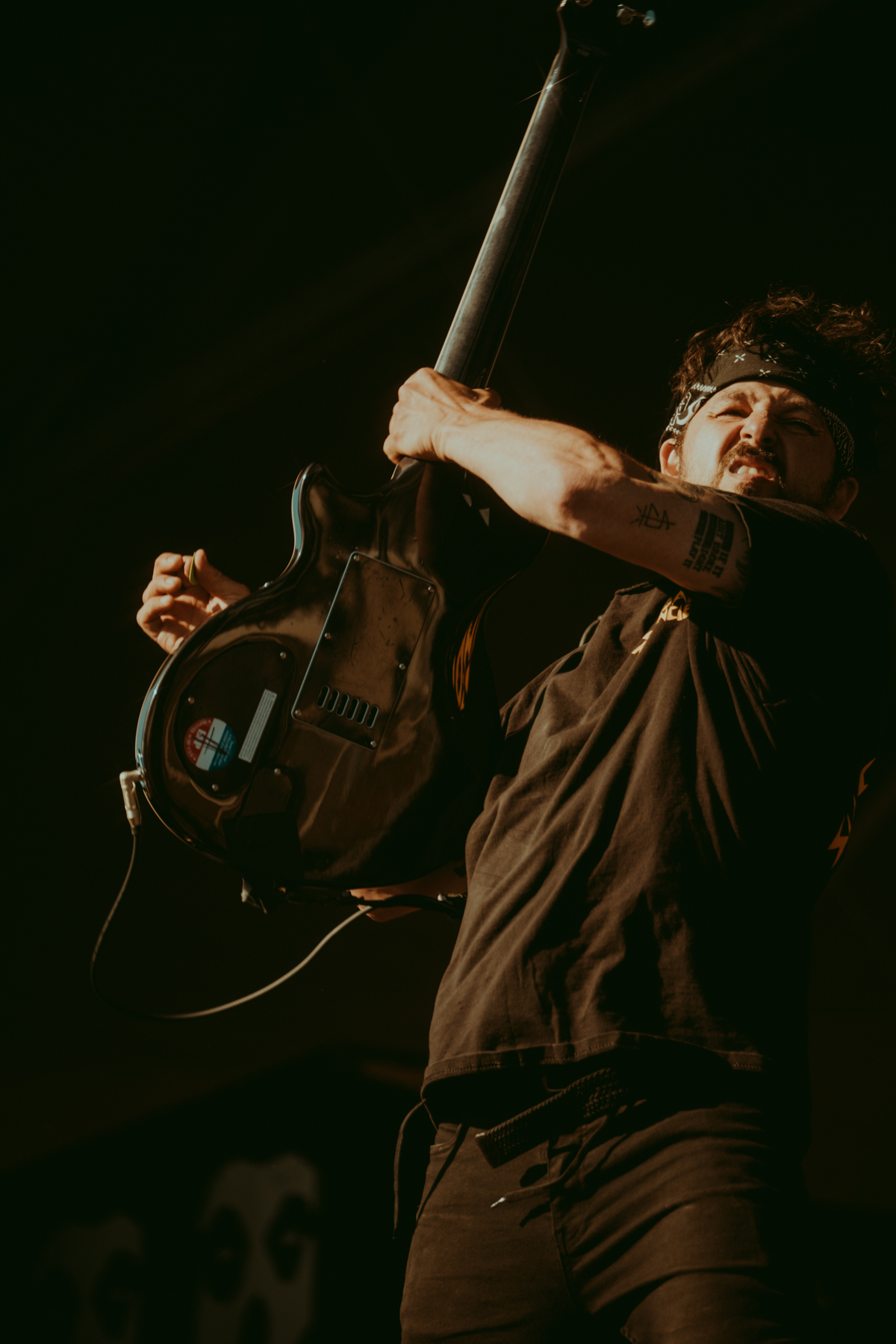 Closing out No Values, it was time for the headliner: The Original Misfits. Turning the stage into what looked like a haunted hayride attraction, the vibes were set. Things felt eerie and creepy as the night sky darkened and bright blue eyes stared at you from inside the giant pumpkin. Everyone gathered, anticipation building. How many people here have waited their whole life to see this band? They all came out adorned in outfits that exemplified their horror-punk aesthetic and matched the spooky stage decor. Glenn Danzig’s fierce and distinct vocals resonated through the festival grounds, perfectly complemented by Jerry Only’s bad ass bass and Doyle Wolfgang von Frankenstein’s insane guitar.