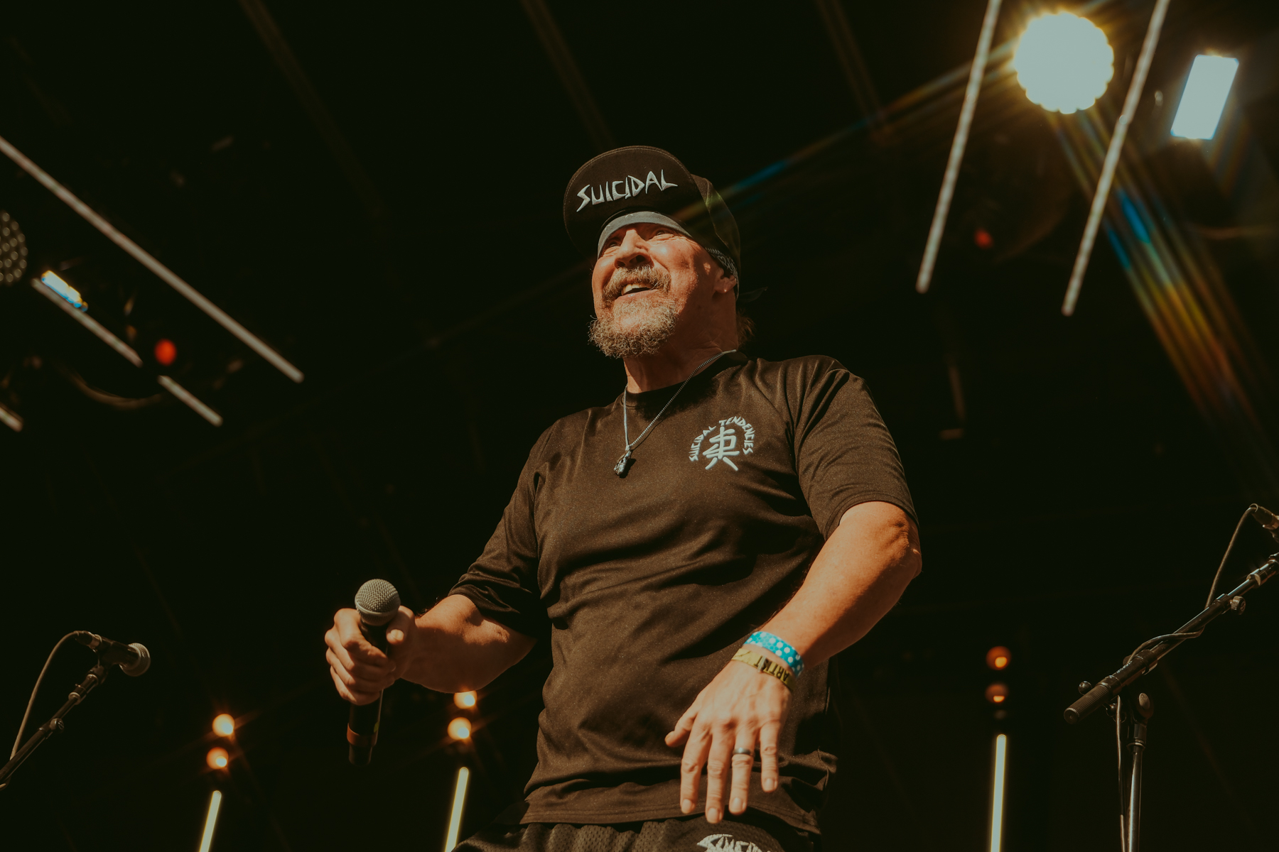 The blend of newer and older artists stacked throughout the day was a fun detail; it felt intimate to see those who inspired each other taking the stage one after another. Each band had a shoutout to another band that was playing that day, showing how they had all taken inspiration from one another. The next few hours were filled with legendary bands, Suicidal Tendencies, The Jesus Lizard, Sublime (with Jakob Nowell), and Bad Religion. Though I was here for work, I am a fan first. That said, I spent some extra time seeing Joyce Manor and Turnstile play.