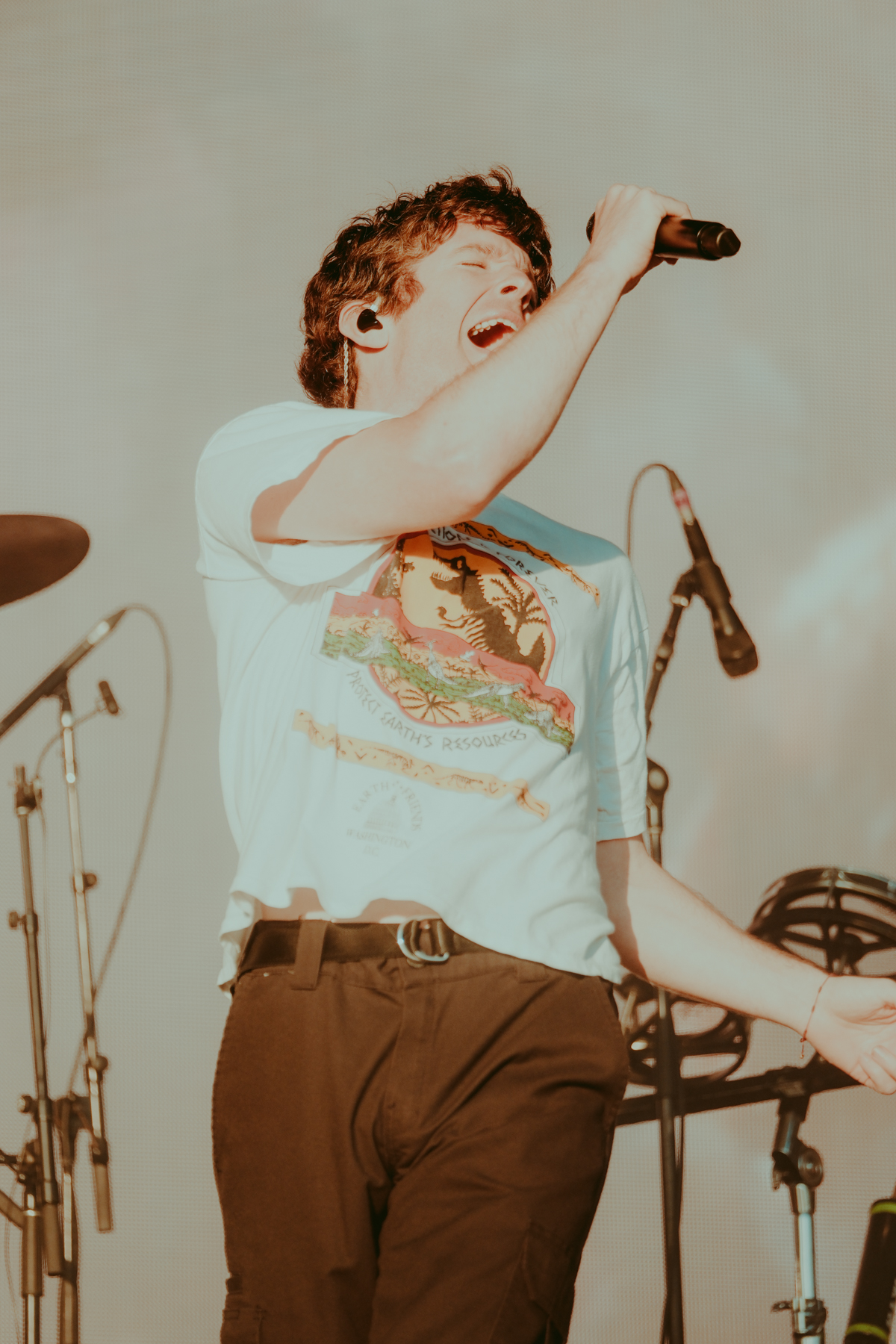 By accident, Joyce Manor started their set 10 minutes early. But once they had finished their planned setlist, they decided to stay on stage and take requests from their fans eagerly screaming out their favorite songs, hoping today would be the day they heard it live. Turnstile was next, and boy-oh-boy was I excited. For the last few years, their setlist has been pretty consistent, but No Values was a bit of a switch-up. As the sun began to set on the day, the sky started to look a bit like the cover art for their album “Glow On.” While some of us moshed and danced like cheerleaders, I think we were all a little bit taken aback when their set ended about 15 minutes early. People were murmuring to each other, wondering if that was really it. They never returned to the stage, which was a bit disappointing, especially considering how highly anticipated their set was.
