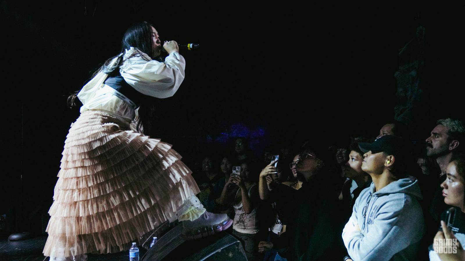 Half-spilled cans of Modelo littered the floor as security escorted a group of girls out who had indulged too much at the Monday night show for Korean American rapper/singer Audrey Nuna at the Echo. This moment was significant as it marked her first solo performance in Los Angeles in three years.