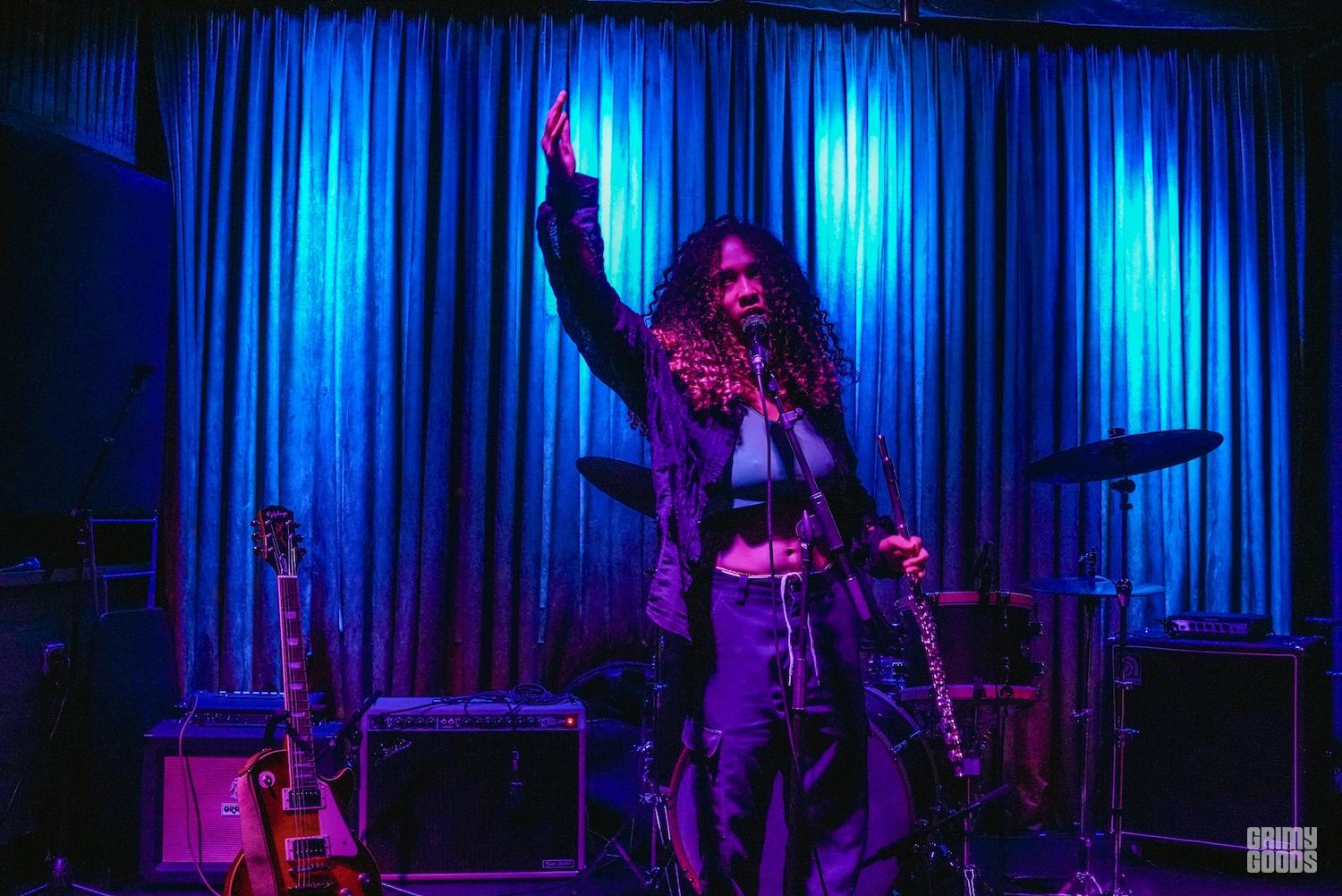 NOAMZ opened the night with an electrifying performance, playing songs from her Pandora’s Box EP and a few favorites, including “Unlovable” and “Anxiety.” She effortlessly switched between playing the flute and guitar and even sprinkled some French language into her performance. The crowd was utterly captivated as she poured her heart into powerful breakup songs and wowed everyone by beatboxing on the flute.