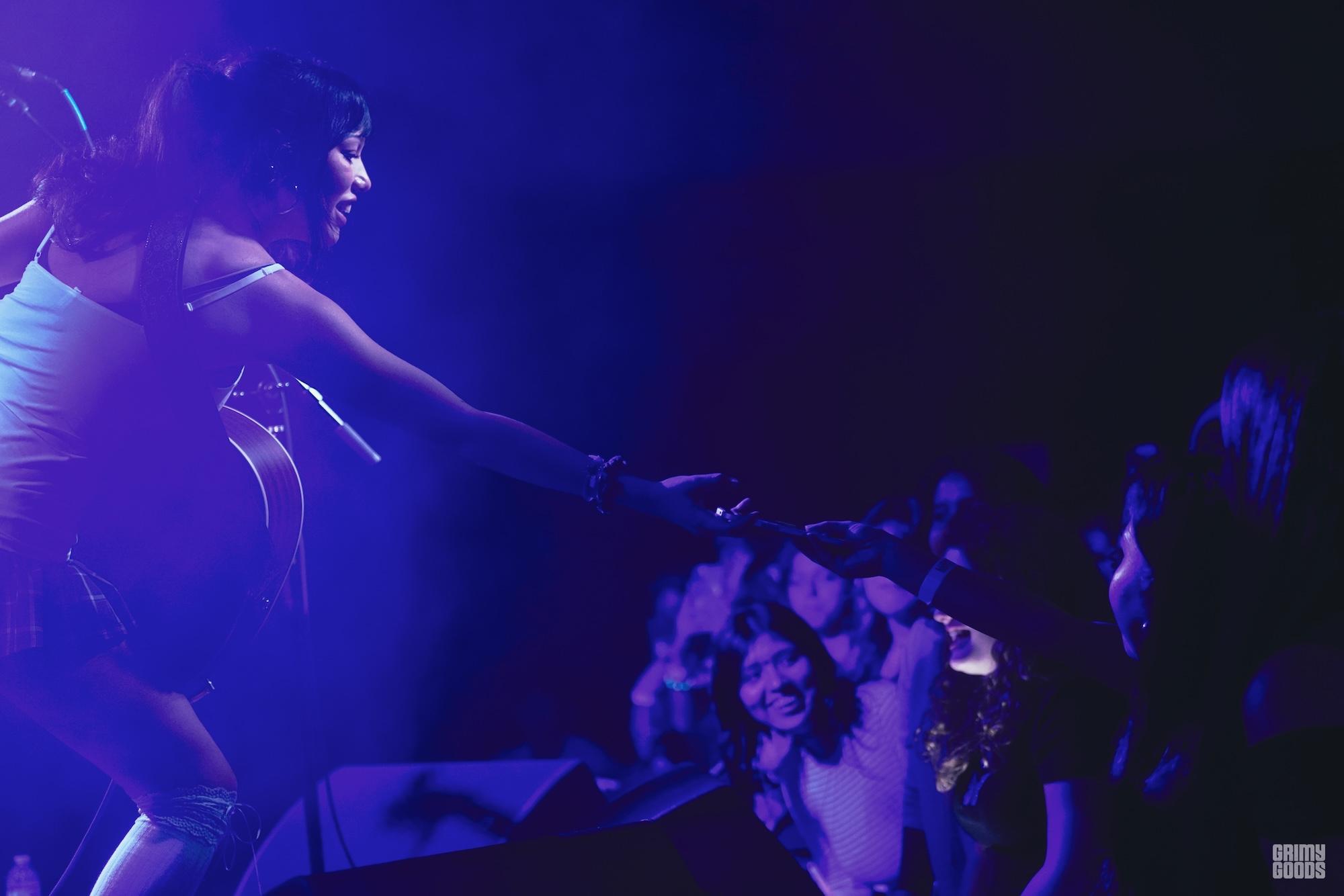 For “waltz,” Tewari encourages the audience to form a circle, rather than a mosh pit, inviting the teenagers to step out of their comfort zones and changing the point of focus from her to them. They hold hands and sway together, their sweet embraces reminiscent of a homecoming dance and formal quinceañera, basking in the moment as they collectively feel seen and serenaded by one of their favorite voices.
