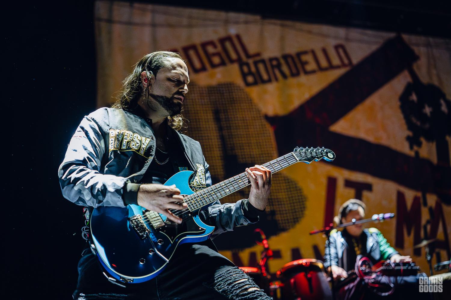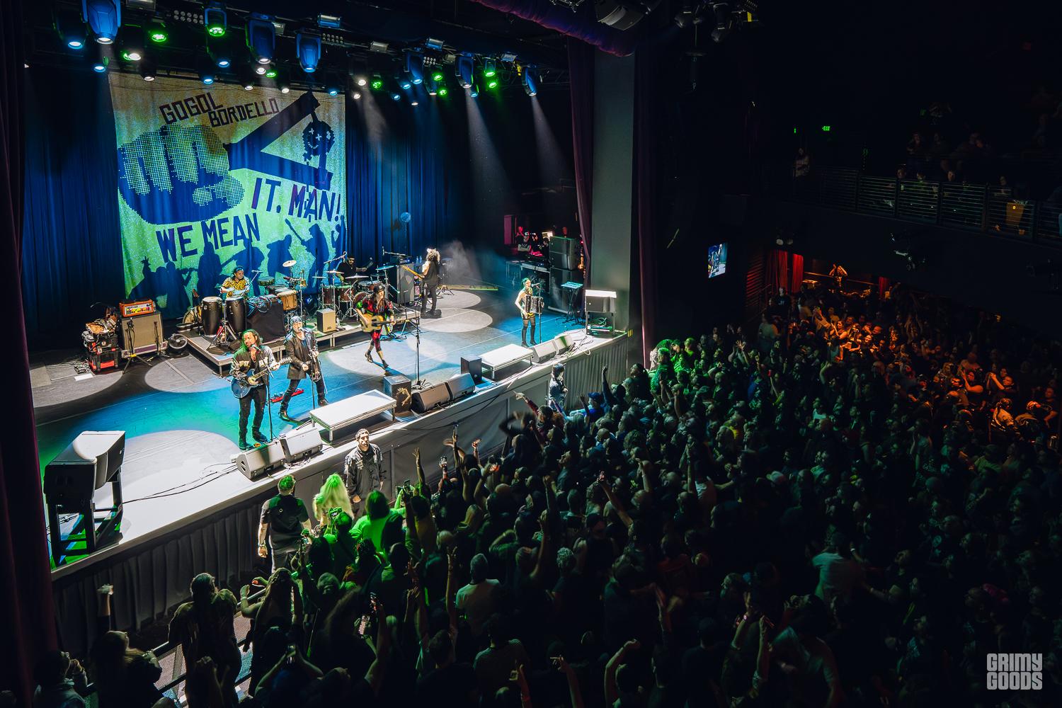 Gogol Bordello, the Gypsy punk band based in New York, took over the stage at The Novo in Downtown LA on tour promoting their latest album, We Mean It, Man! From the moment they hit the stage, the band’s explosive energy was undeniable, keeping the audience hyped from start to finish. The crowd erupted when the beloved notes of “Wanderlust King” rang out, setting the tone for the night, punctuated shortly after by a resounding “Fck ICE” from frontman Eugene Hütz, met with full-throated approval from the space.