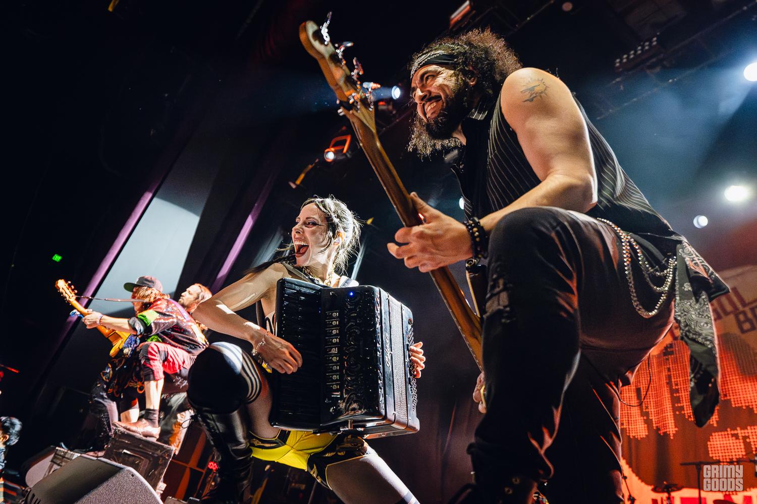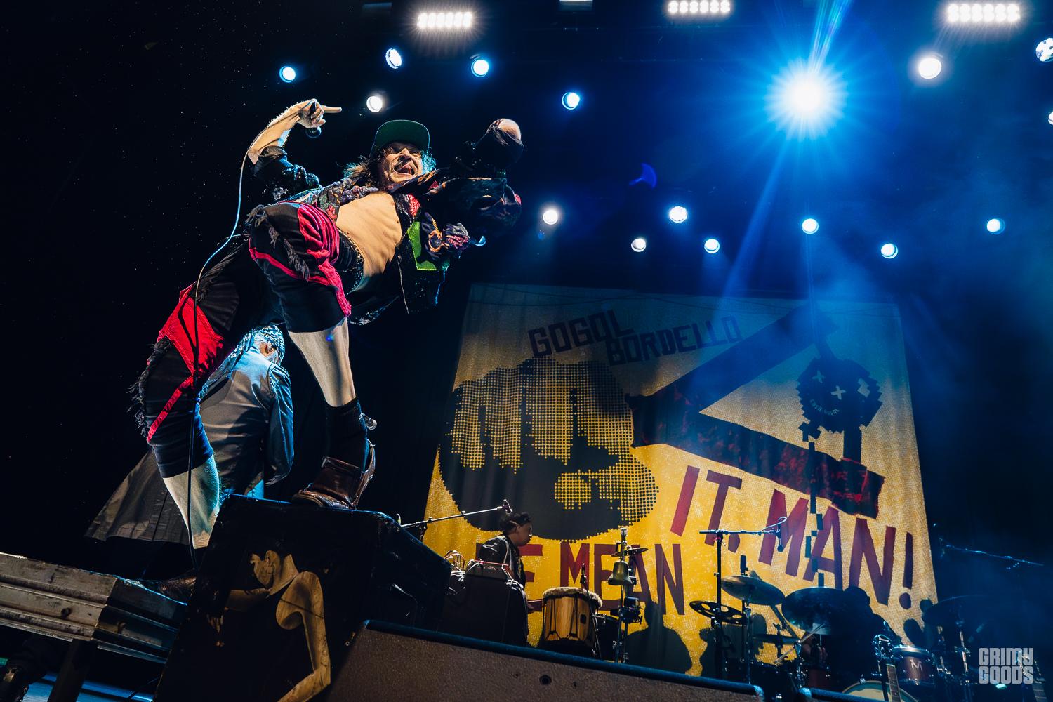 Politics and music have never been separate for Gogol Bordello. Multitalented hypeman Pedro Erazo stepped forward to declare, “Fck ICE, fck Trump… LA is a community,” followed by a strong “We comin’ rougher every day,” a preamble for their classic, “Immigraniada.”