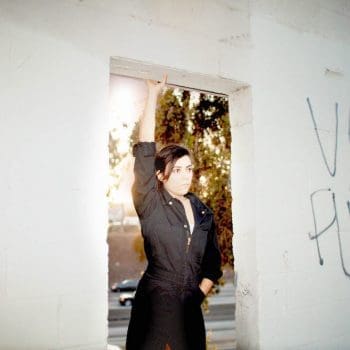 • Jade LeMac press photo in oversized black leather jacket by Meredith Traux